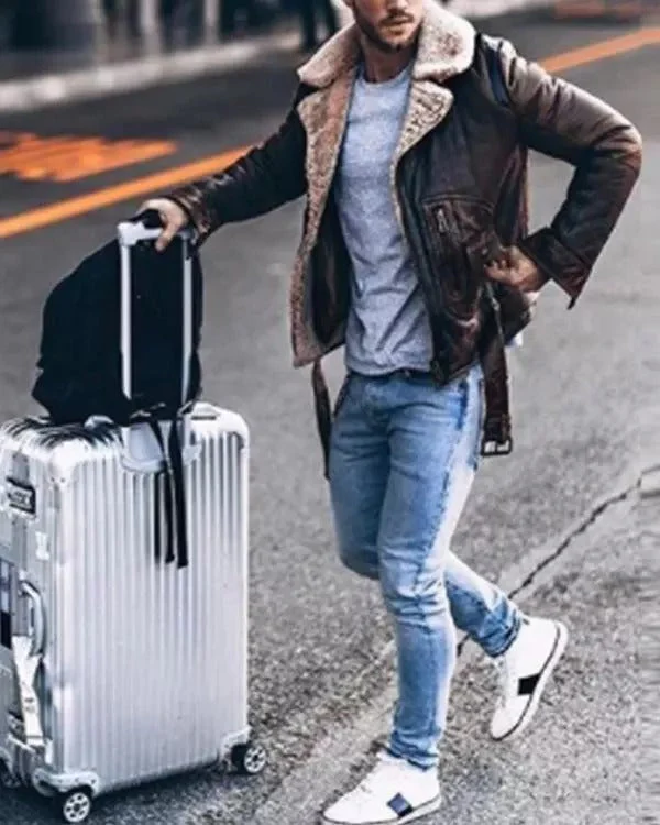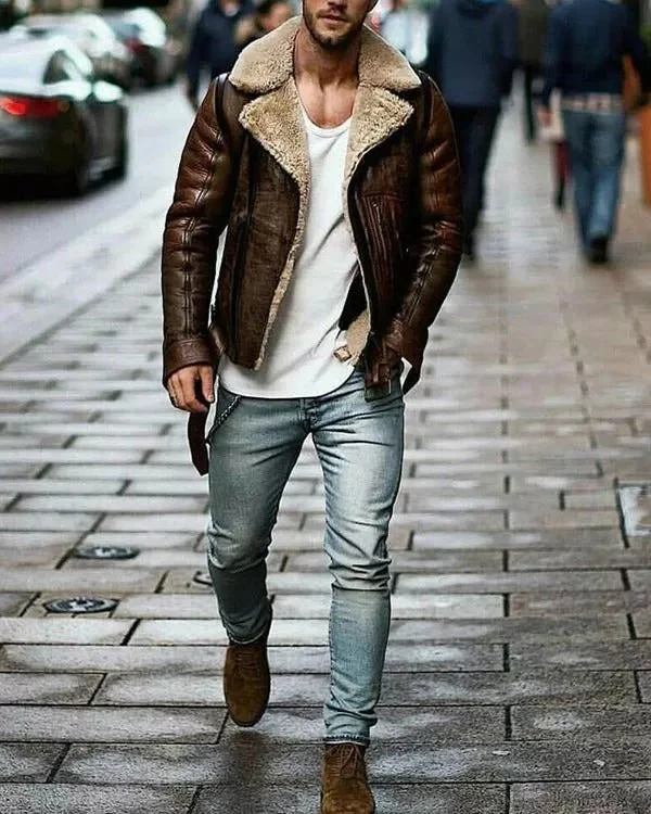 Men's Pocket Stitching Plush Hooded Coat Winter Fashion Long Sleeve Slim Fit Warm Turn-down Collar Hooded Coat