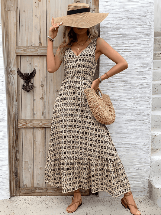 Ashlyn V-Neck Tiered Maxi Dress - Beige