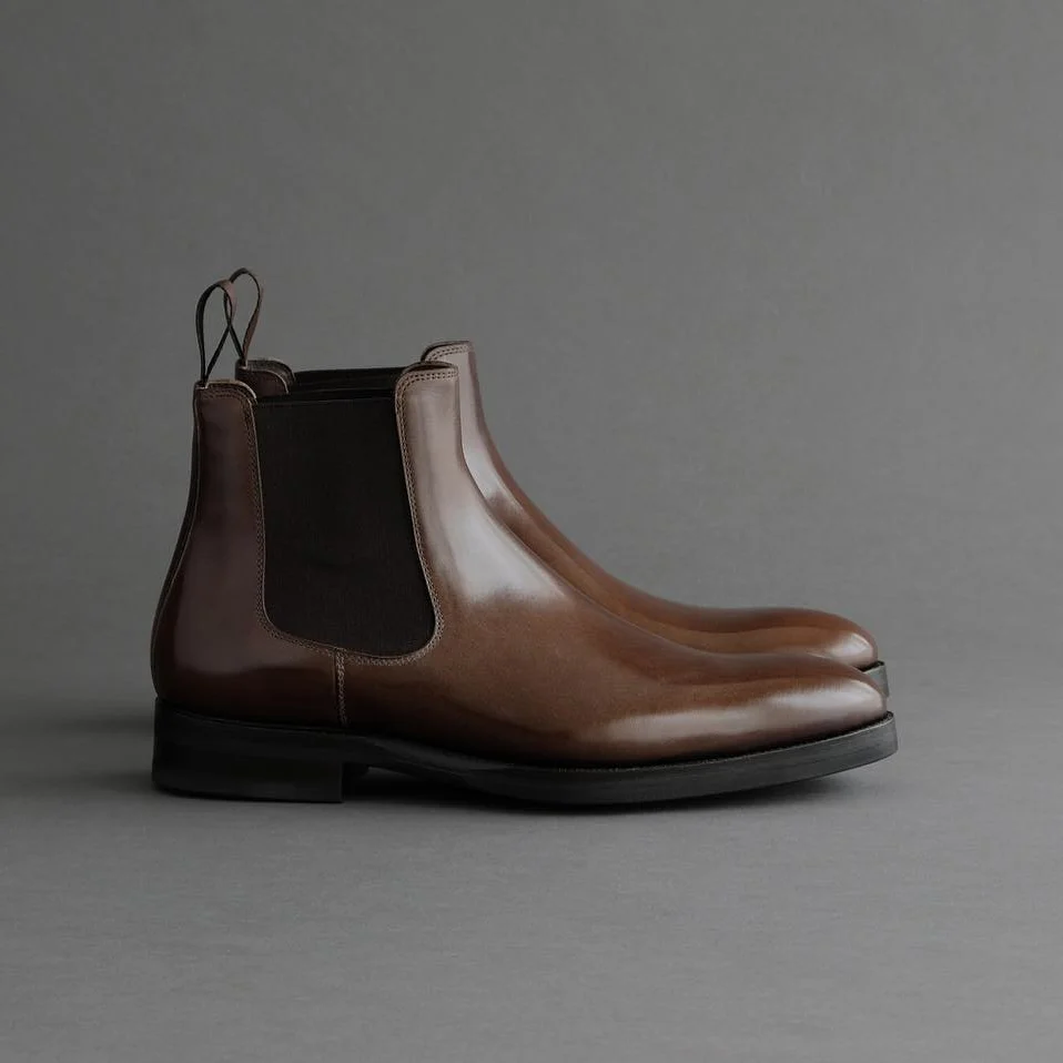 Brown Red Plain Gentleman Style Handmade Pointed Toe Chelsea Boots