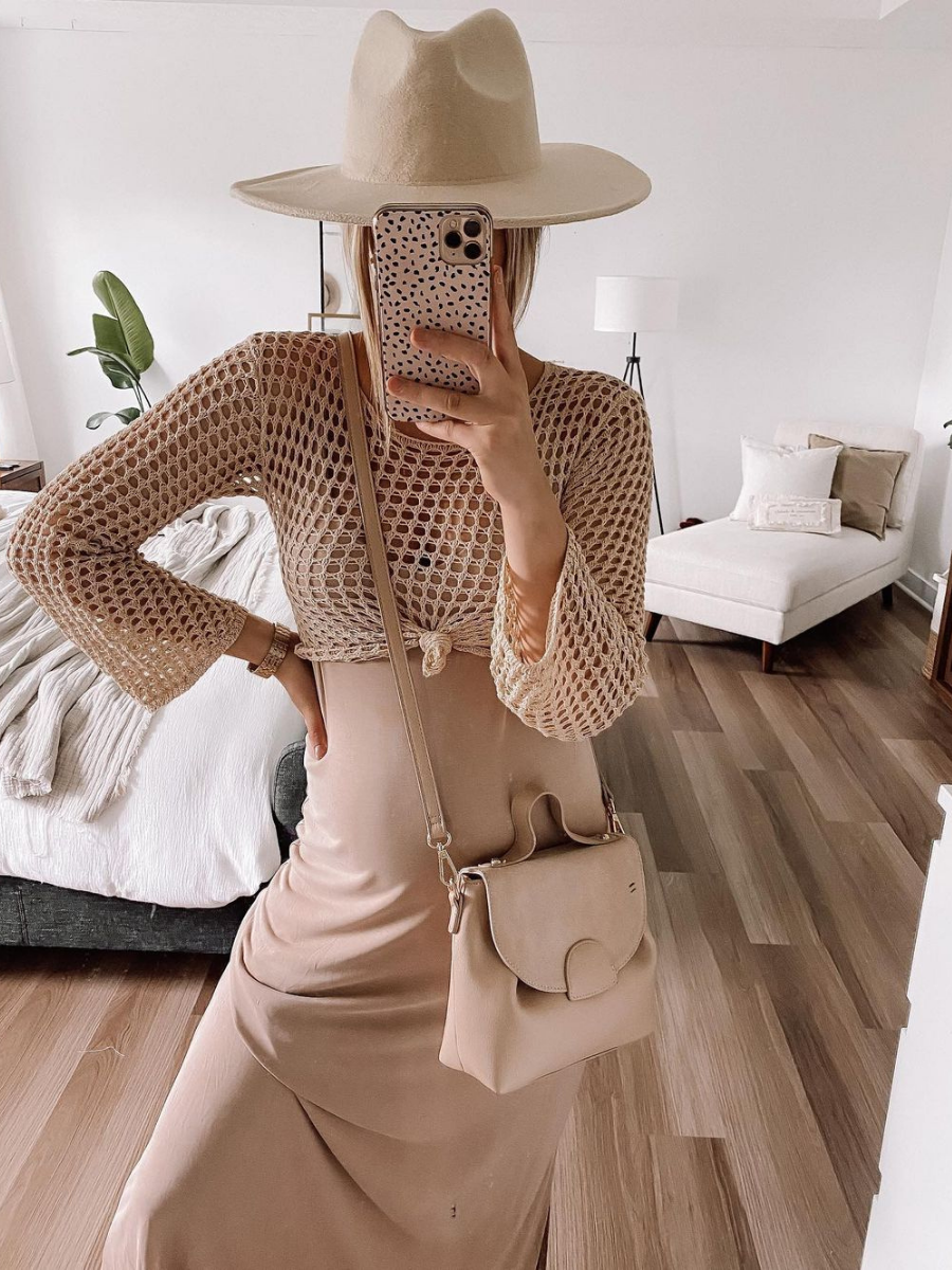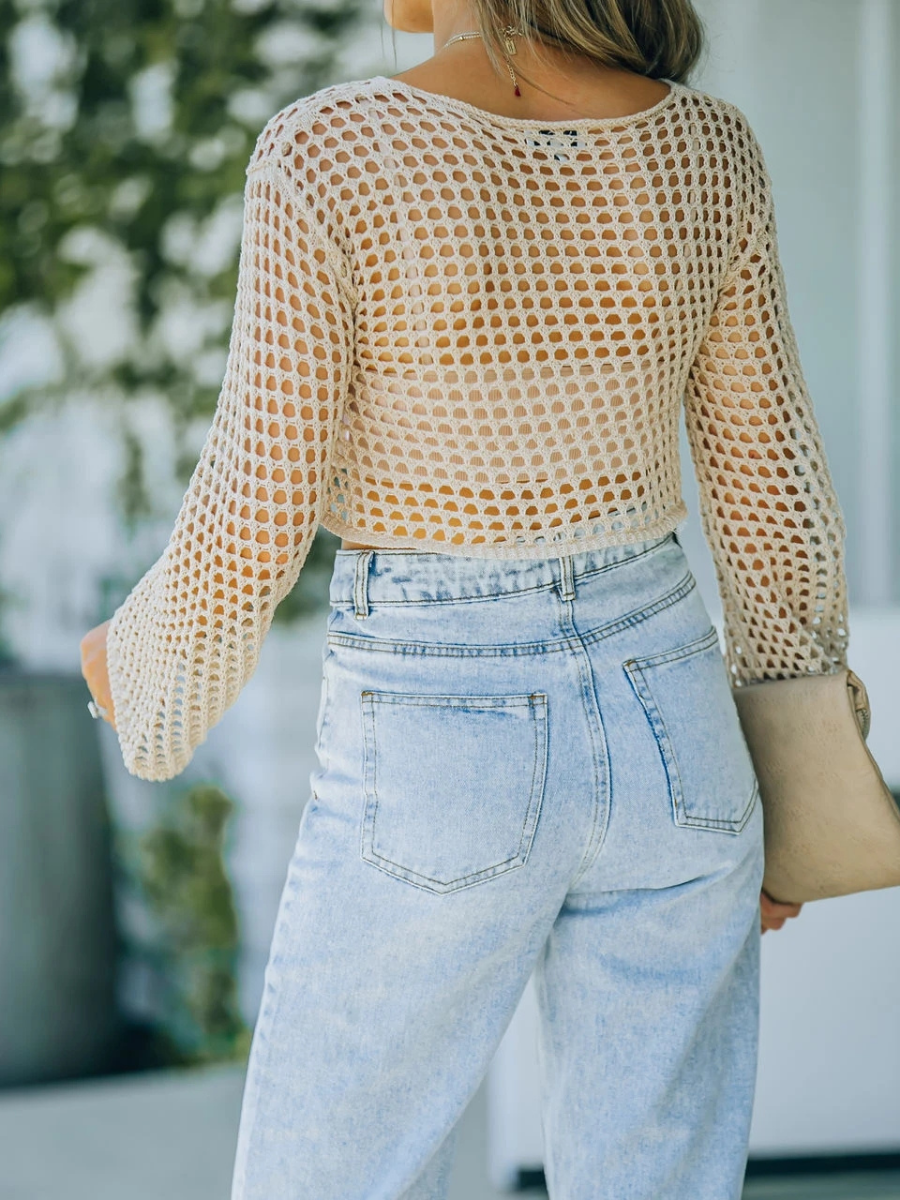 OurAida Top comes in abeige tone base. It features a cropped length & a round neckline for a relaxed, comfortable fit. Pair this top with ourlatest sandalstyles to complete the look!