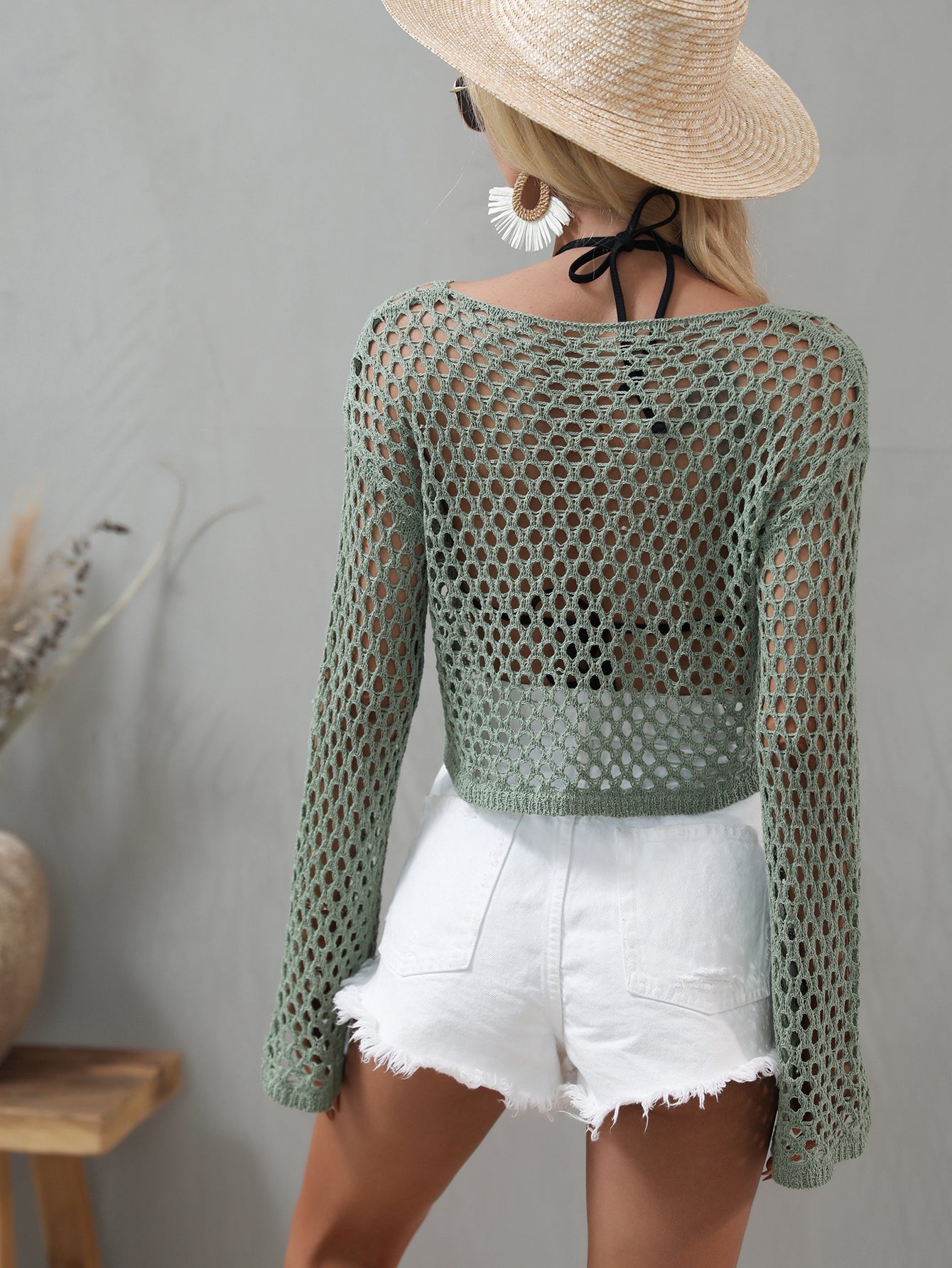 AIDA CROCHET KNIT TOP - OLIVE
