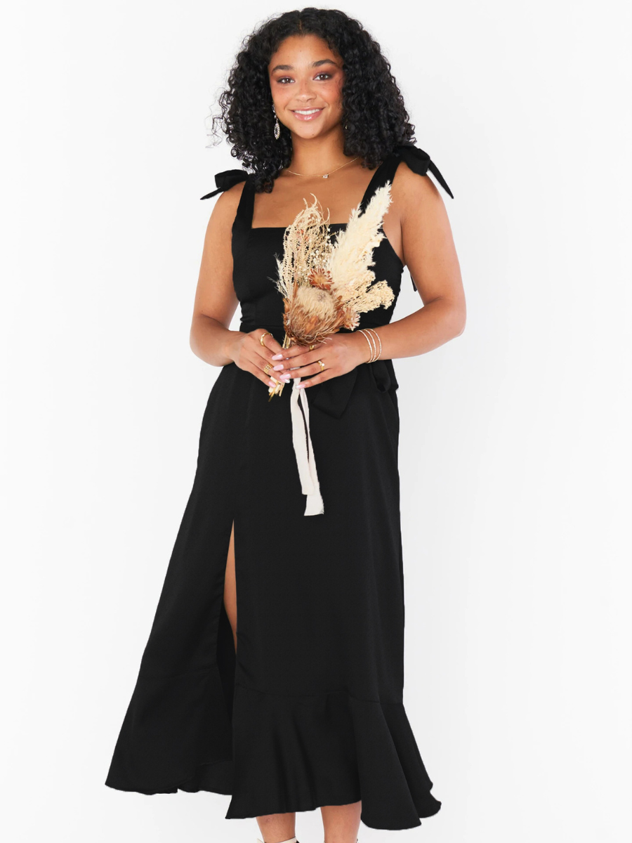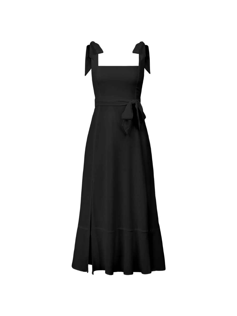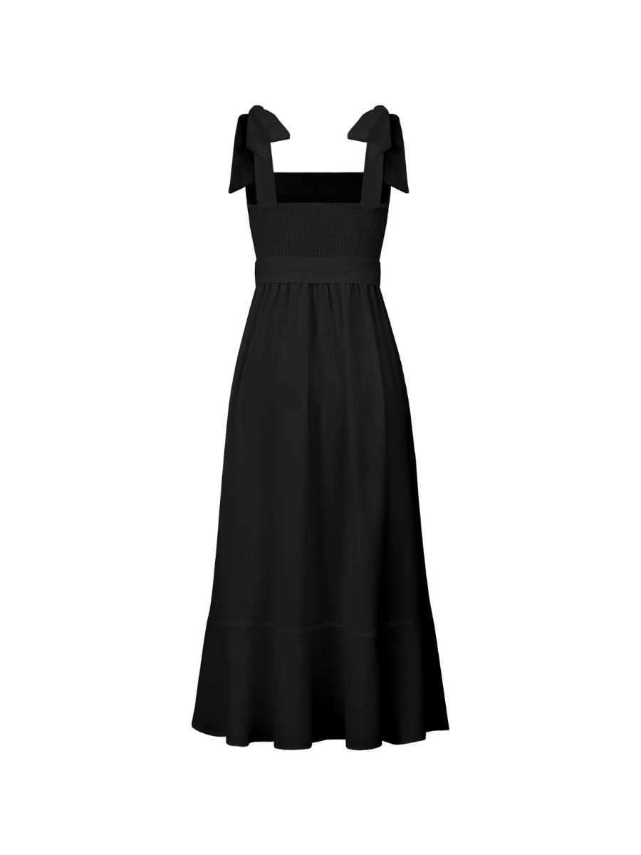 AVIANCA SHOULDER TIE BRIDAL MIDI DRESS - BLACK