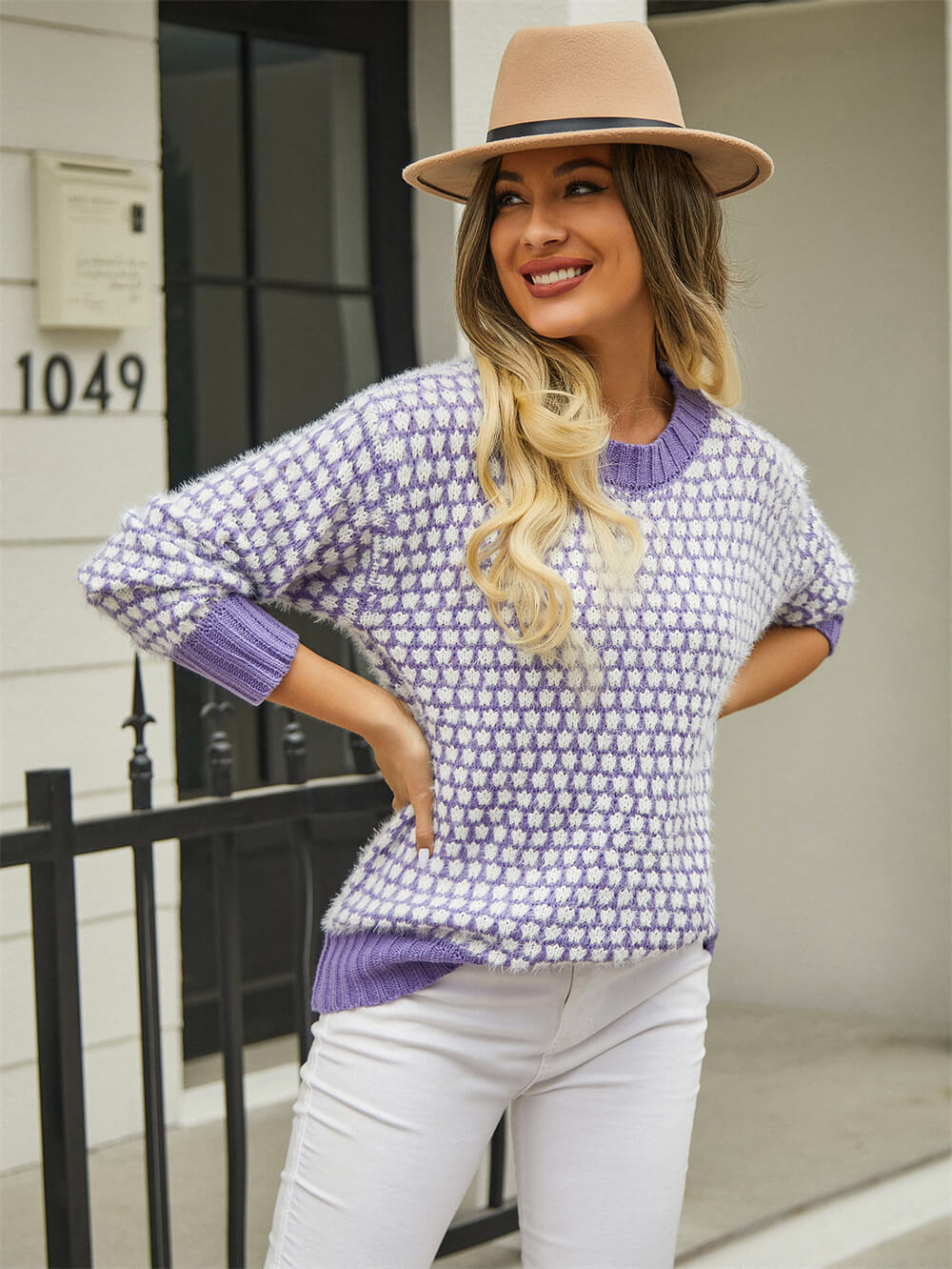 Look fancy and fun in this Azusa Spot Knitted Sweater! Thislilac beauty features an eye-catching spot print allover that is sure to turn heads. Wear it on your next outing and strut the scene with confidence!