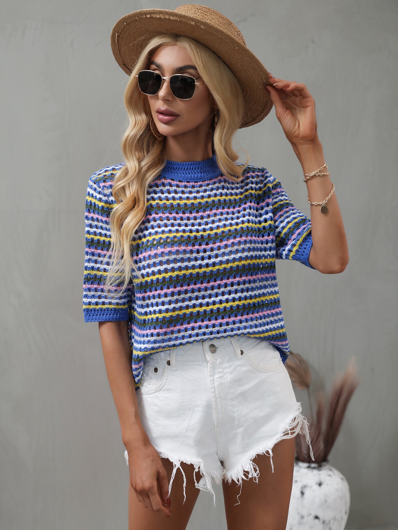 OurBee Knit Top comes in tones of blue, navy, purple, andwhite multi striped print. You can never have too much knitwear, especially when we are transitioning through to early summer. This comes in a classic stripes design and fitted style that is perfect for layering! Pair this top with ourlatest luxue pumpcollectionto complete the look!