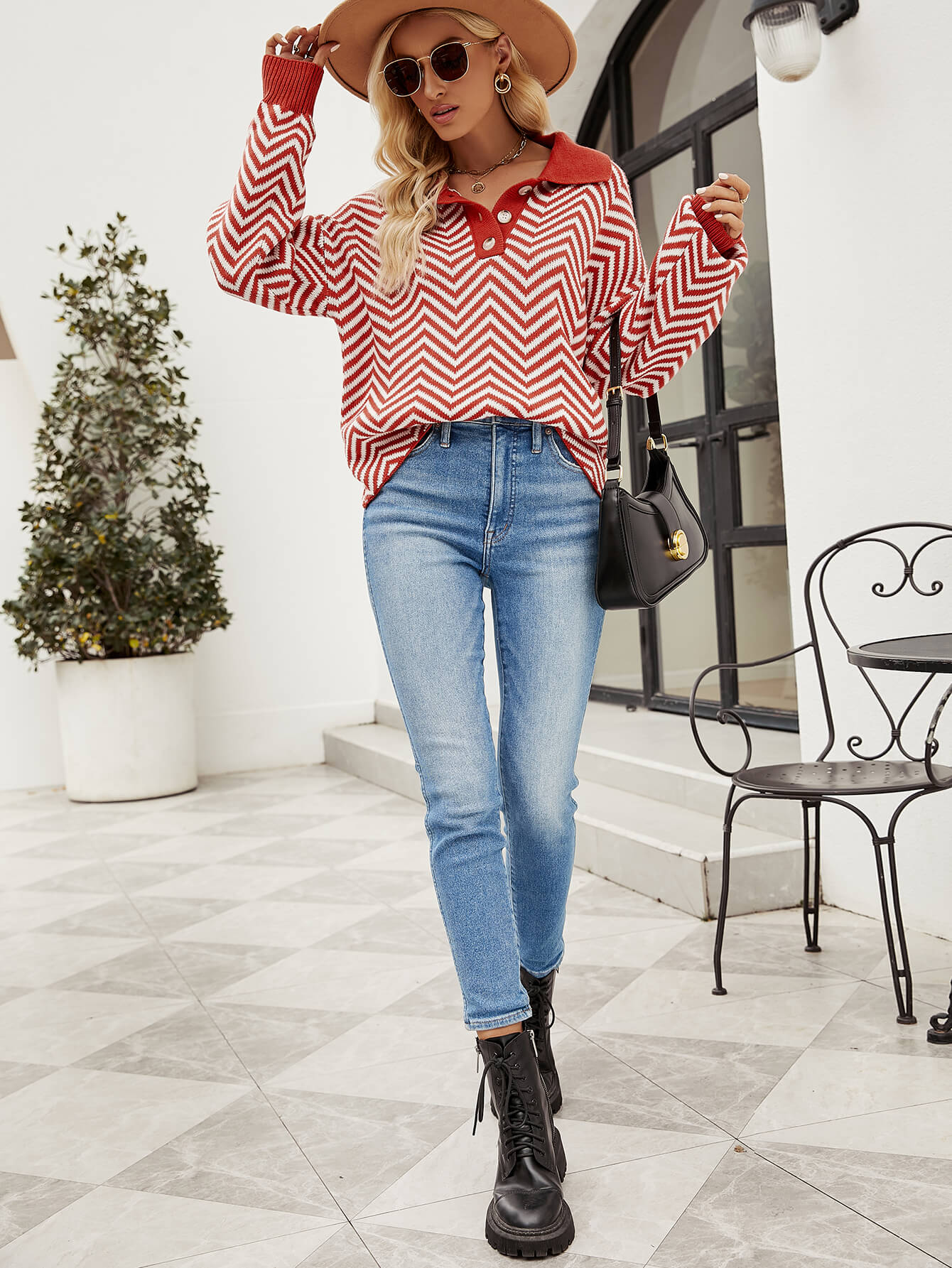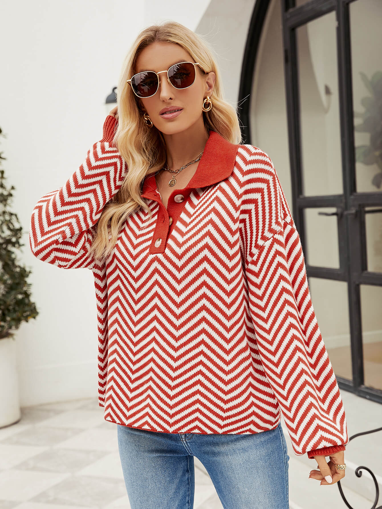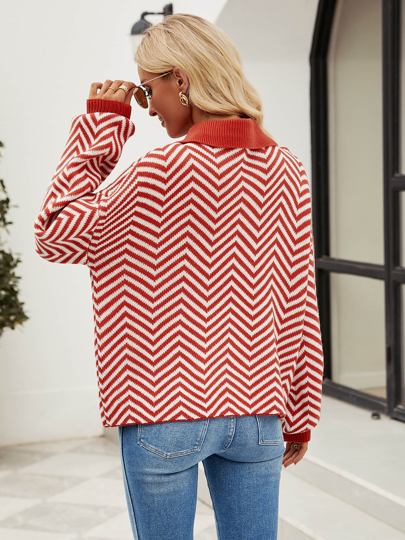 Benji Zig Zag Striped Batwing Sleeve Sweater - Red