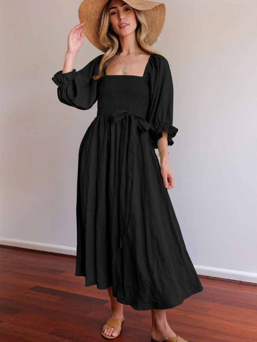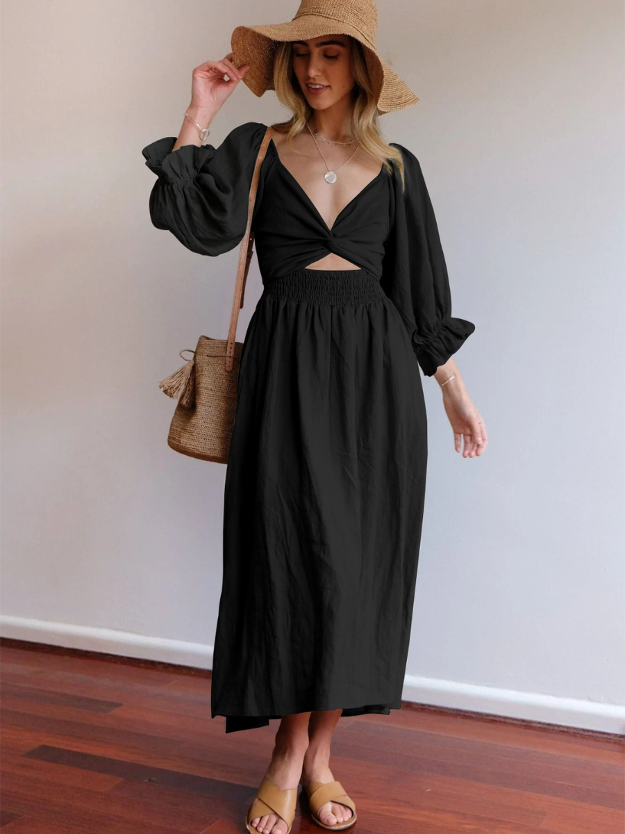 CALL IT LOVE TWO WAY TIERED MIDI DRESS - BLACK