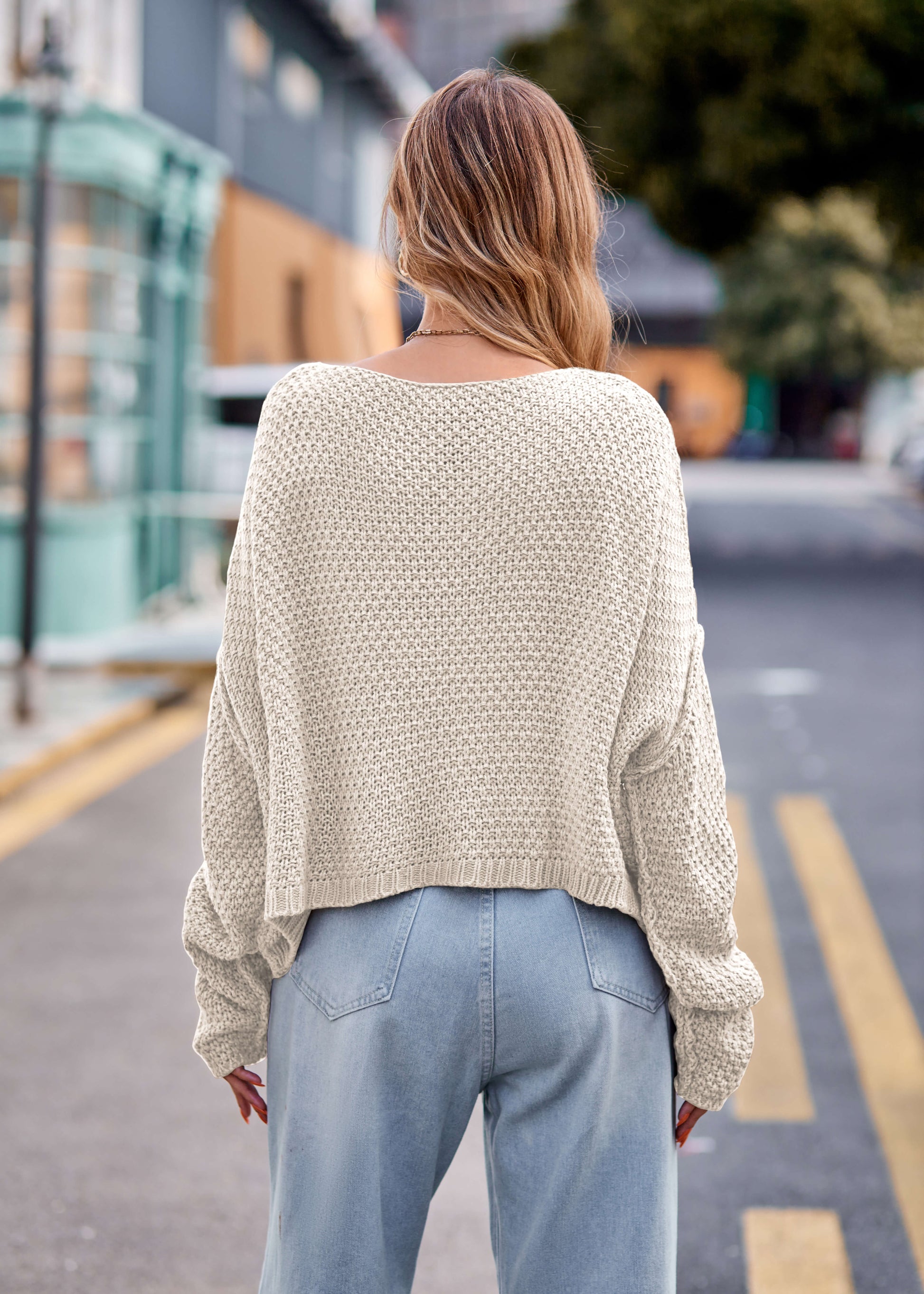 - Feature: Wide Round Neckline. Long Sleeves. Cable Knit Fabric.Relaxed Fit.