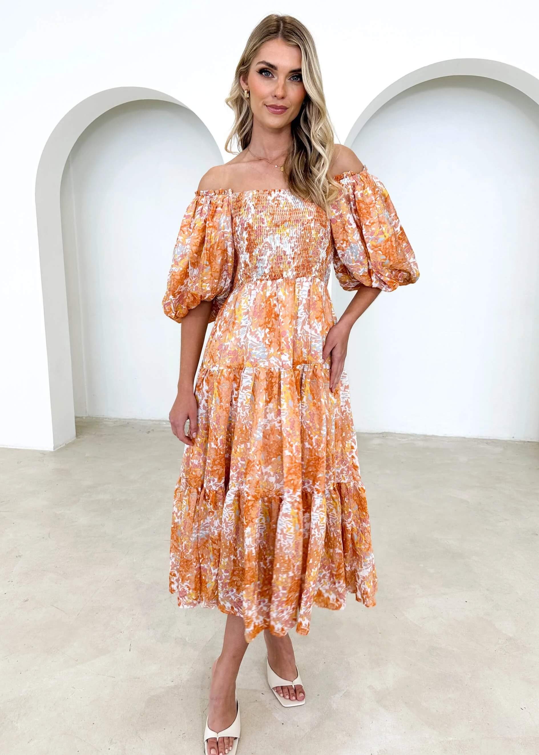 Chiara Floral Off The Shoulder Maxi Dress - Orange