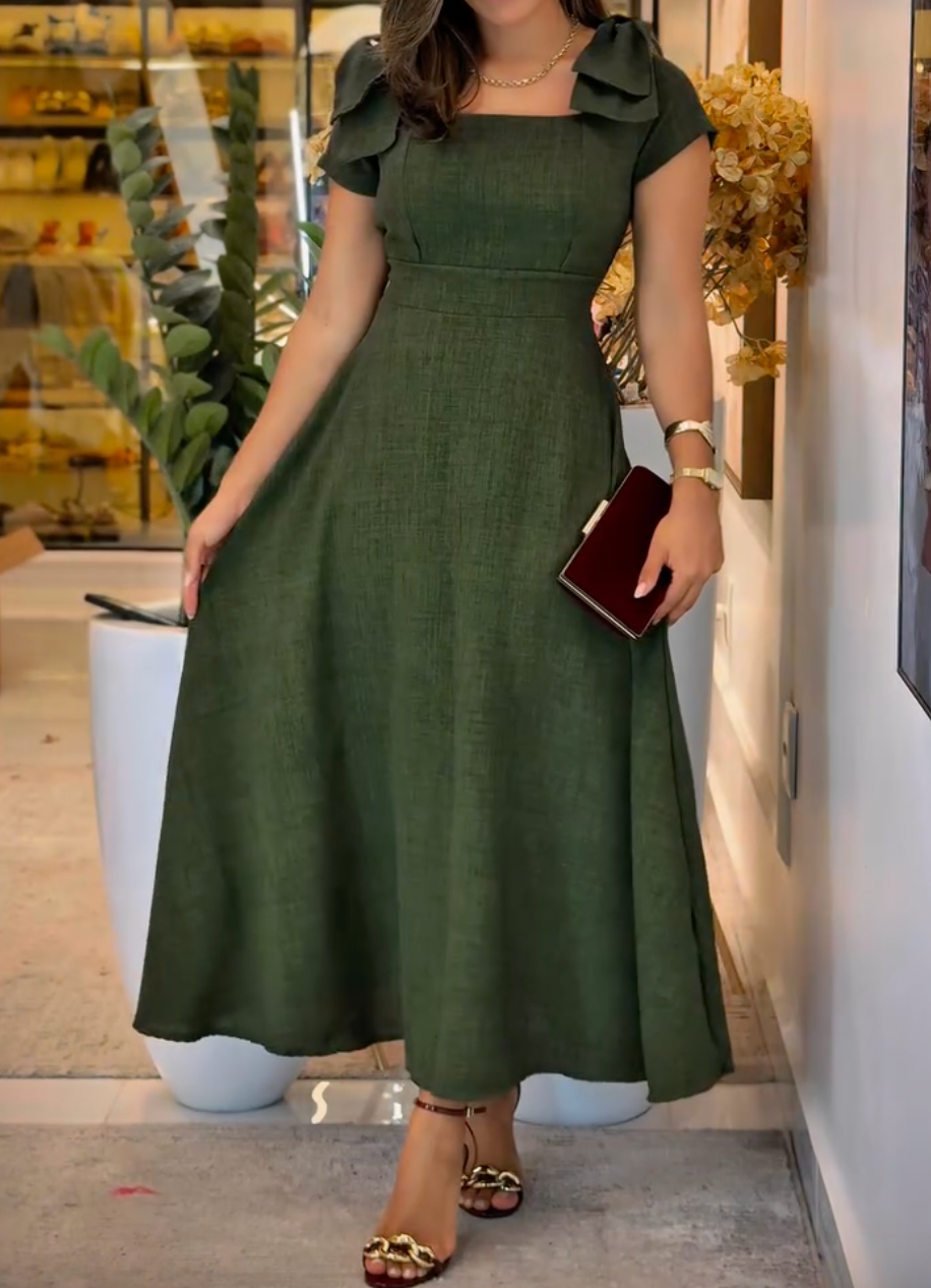 Chic Green Short Sleeve Midi Dress