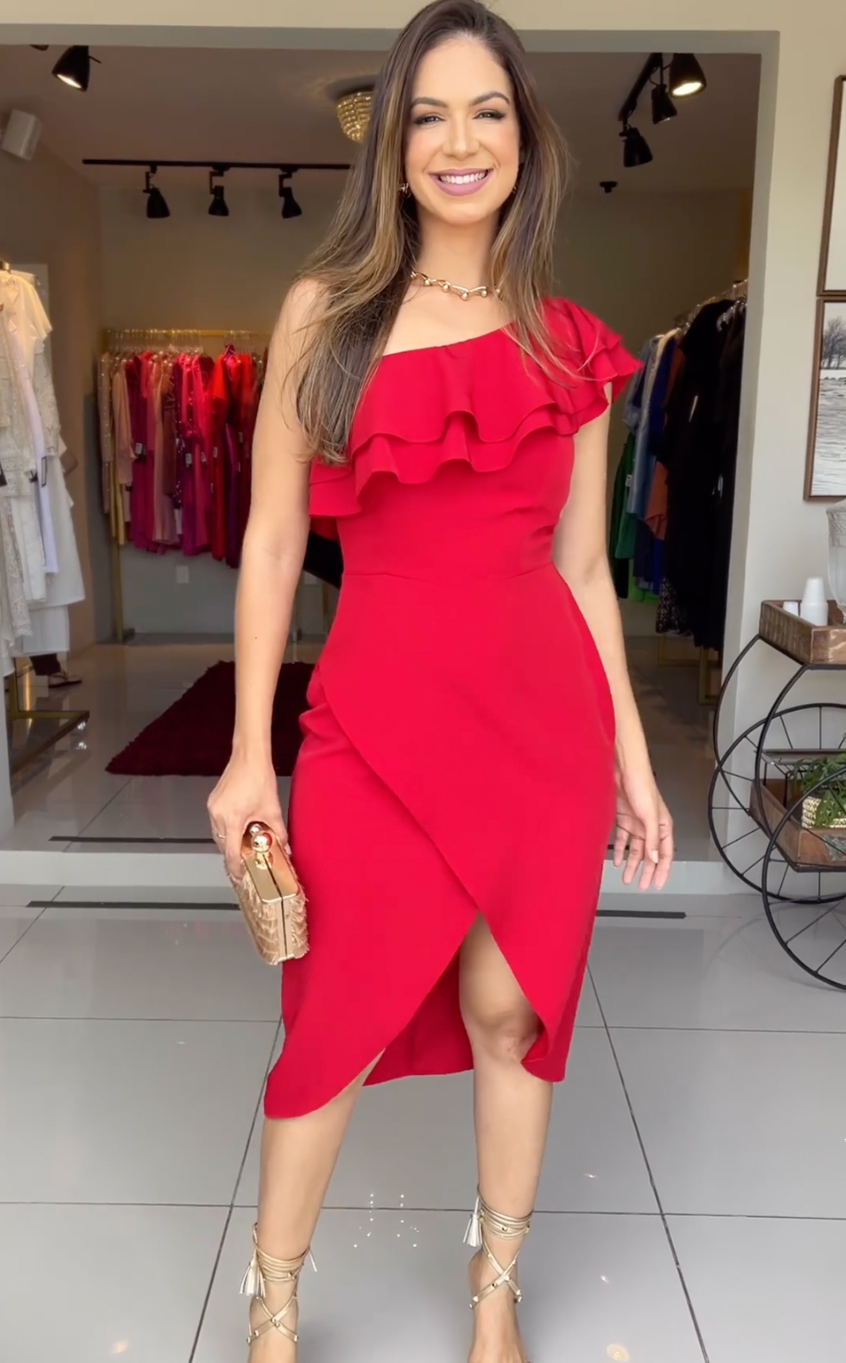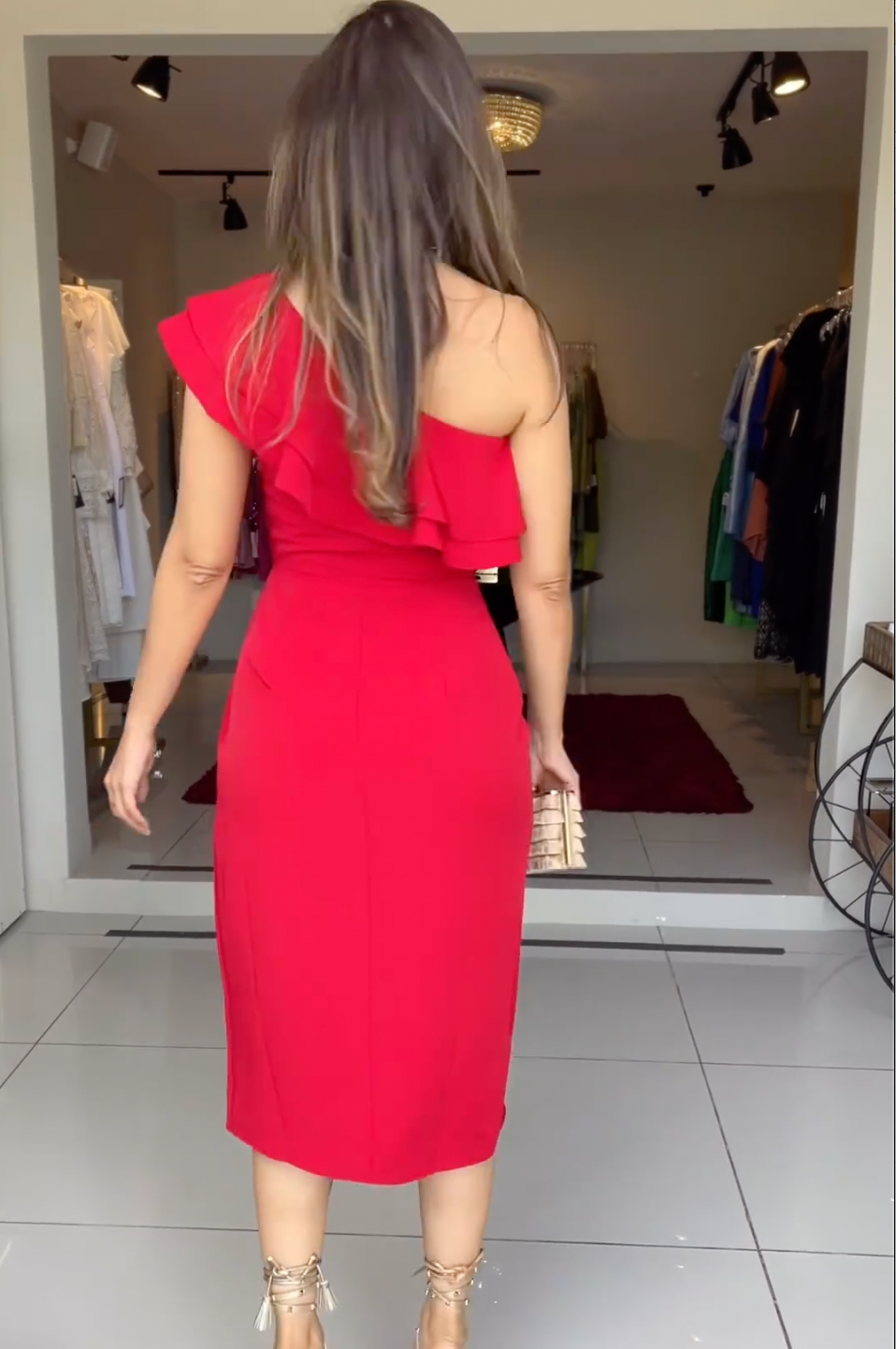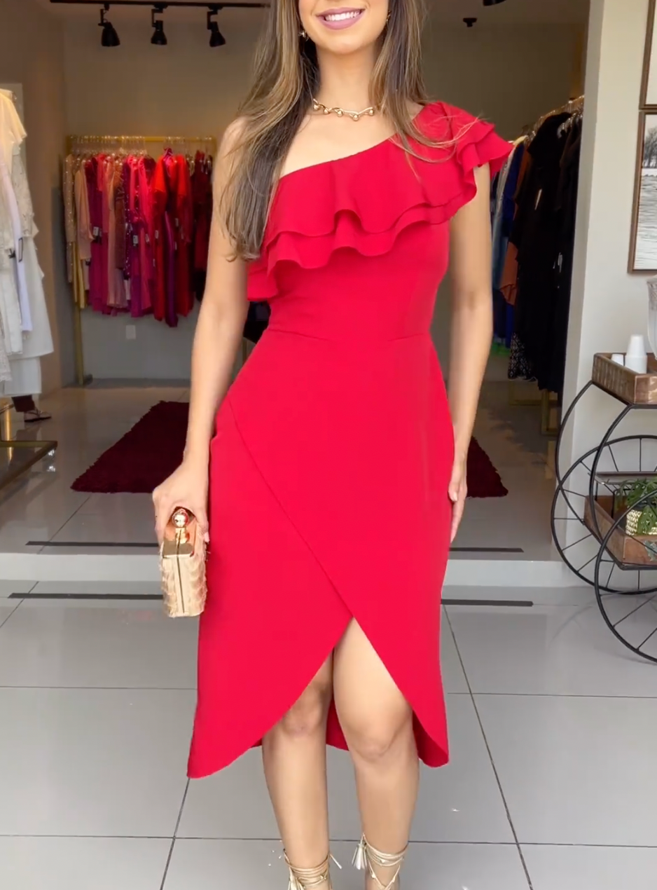 Classic Red One-shoulder Midi Dress
