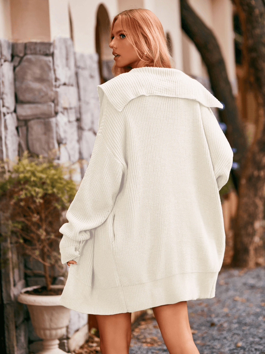 - Feature: CapCollar. Long Sleeves. Side Pockets. Knit Fabric. Front Button Closure. Relaxed Fit.