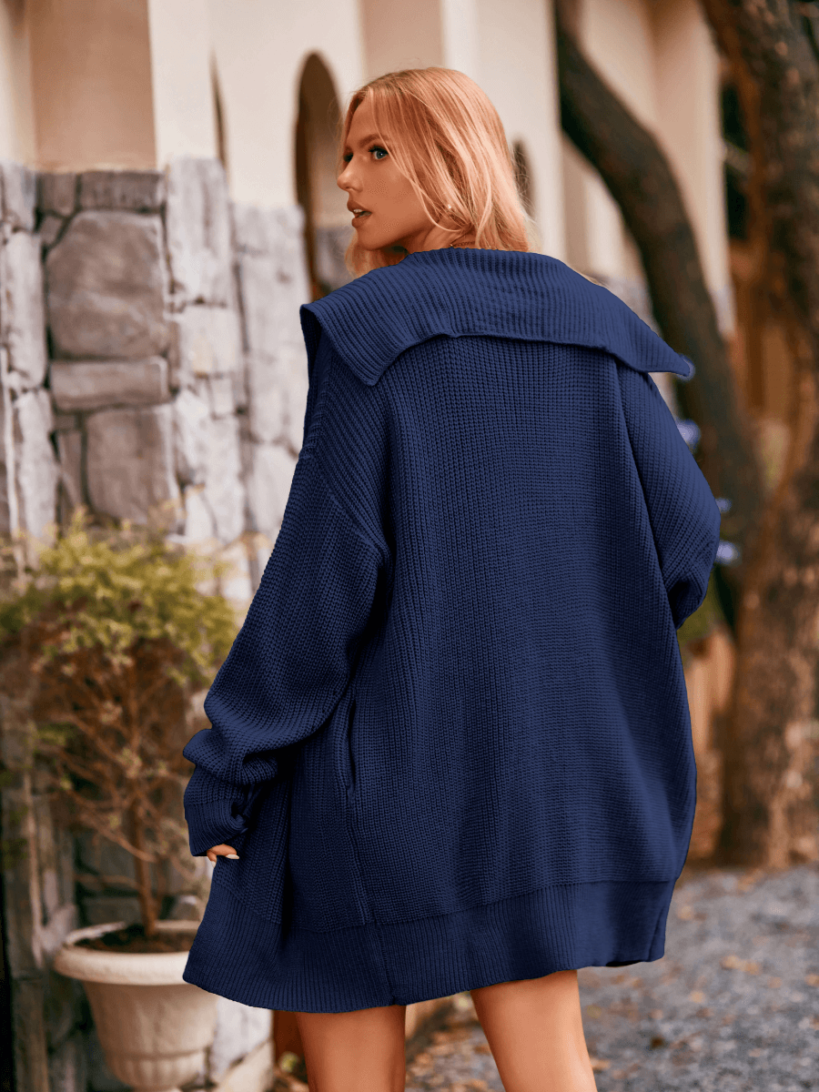 - Feature: CapCollar. Long Sleeves. Side Pockets. Knit Fabric. Front Button Closure. Relaxed Fit.