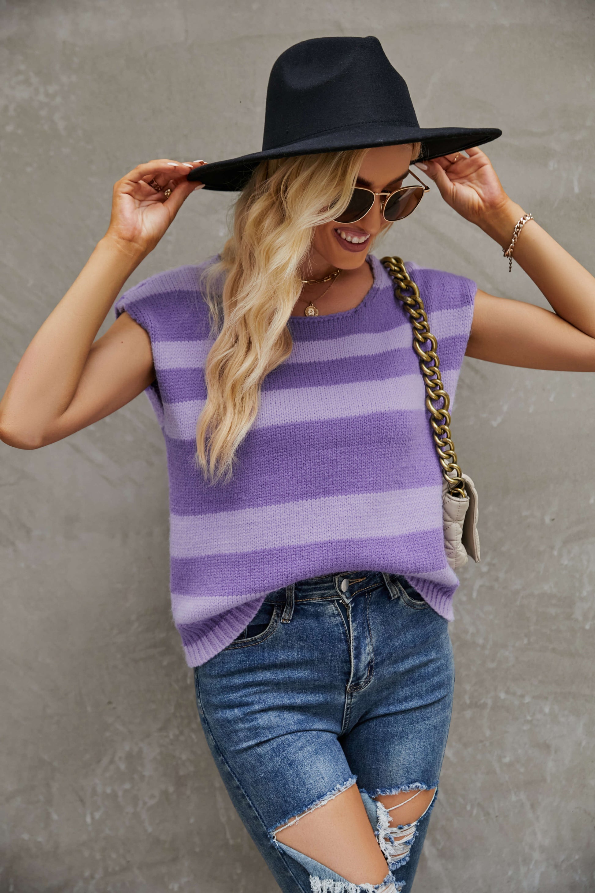 Let loose in this summer-ready Diego Knit Striped Sleeveless Top. Its breathable knit fabric with a fun striped pattern shows off your wild spirit and makes it perfect for any outdoor adventure. The sleeveless design helps keep you cool, so you can make a statement wherever you go!