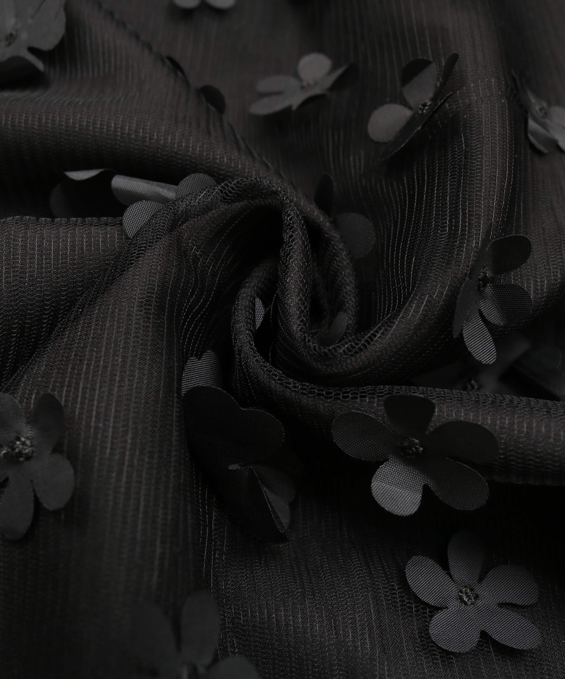 - Feature: Halter neckline. 3D Daisy Embroidery. Front Bow. Mini length. Back neck ties. Lined. Relax fit.