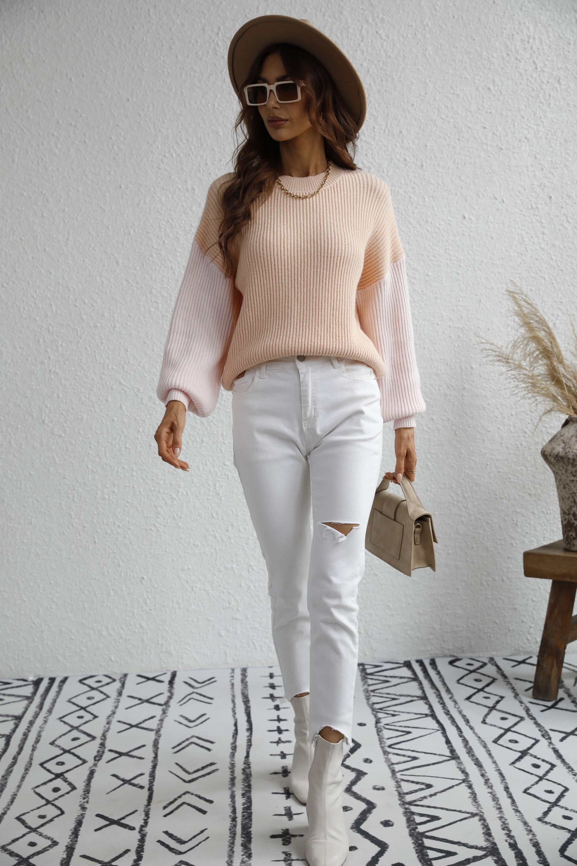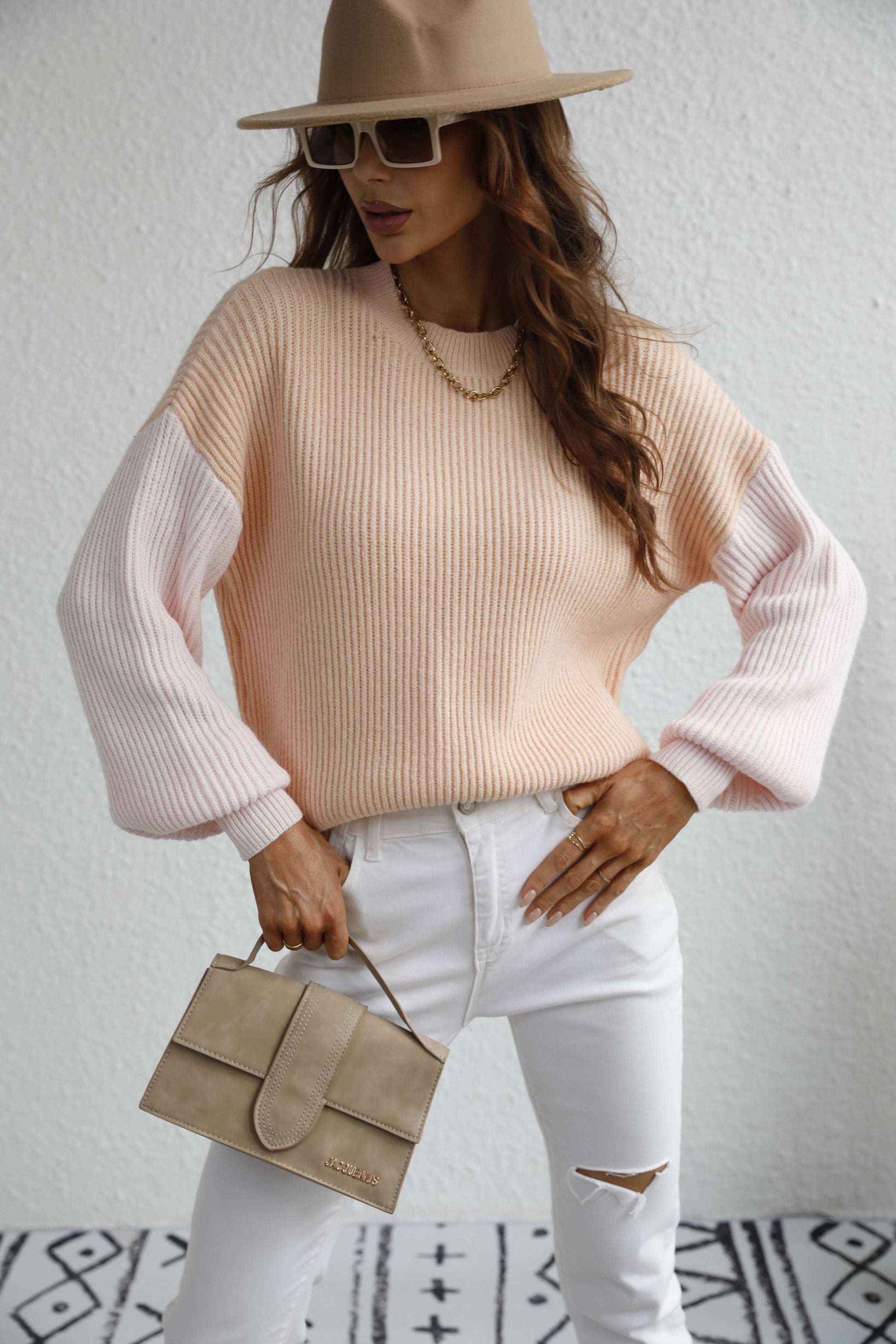 Our Estatia Knit Sweater comes in a beautiful colour blocking in the shades ofblush and baby pink. So cosy you wouldn't want to take it off, this jumper features a crew neck, long drop sleeves and contrasting hues for a stylish drama. Pair it with our luxe ankle bootsor trendyleather bootsbe the talk of the town!