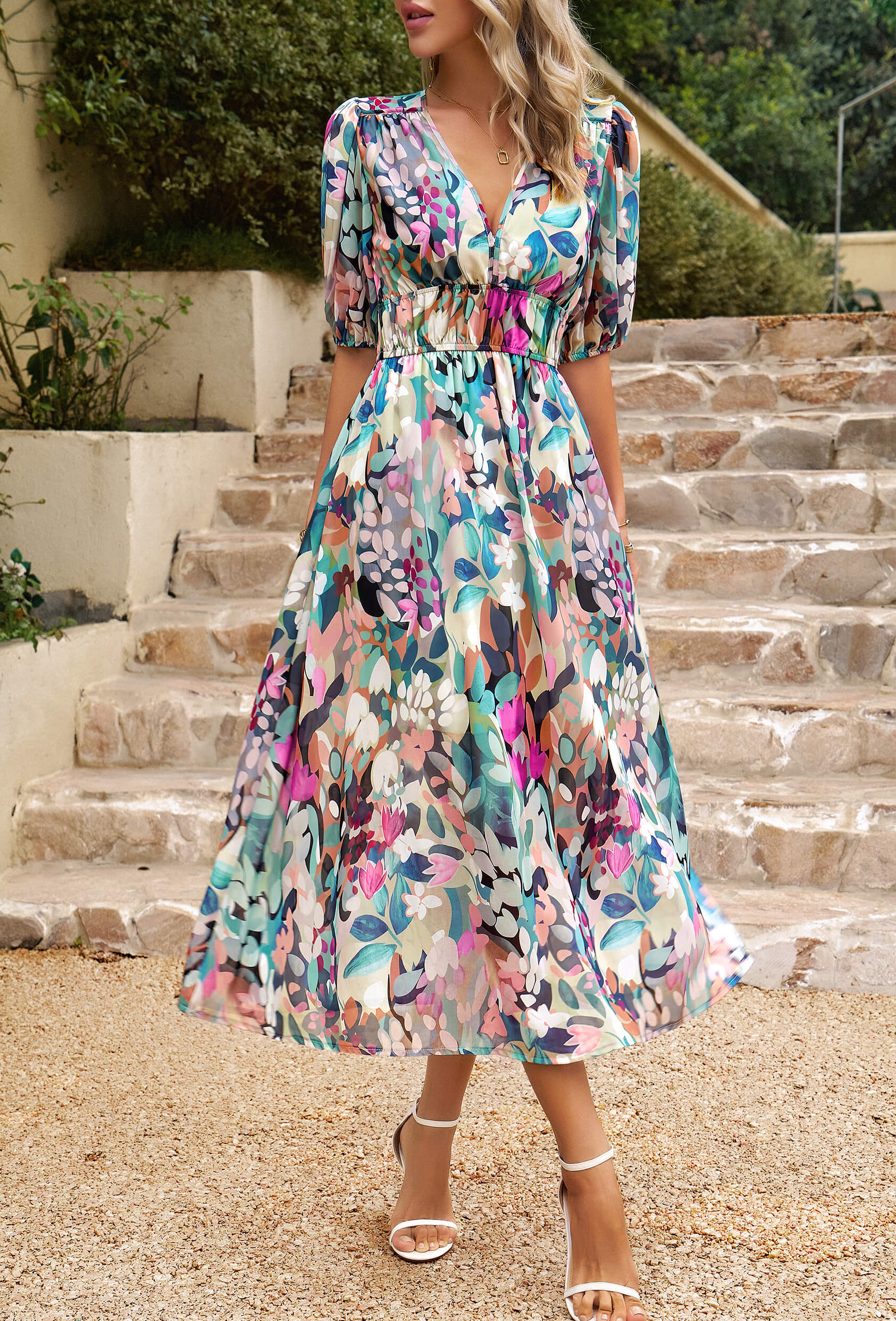Step out in style with our Euphoric Mood Floral Printed Midi Dress. Featuring colorful, eye-catching floral prints, this dress commands attention, delivering unstoppable confidence and an effortless, daring style. Dare to stand out!