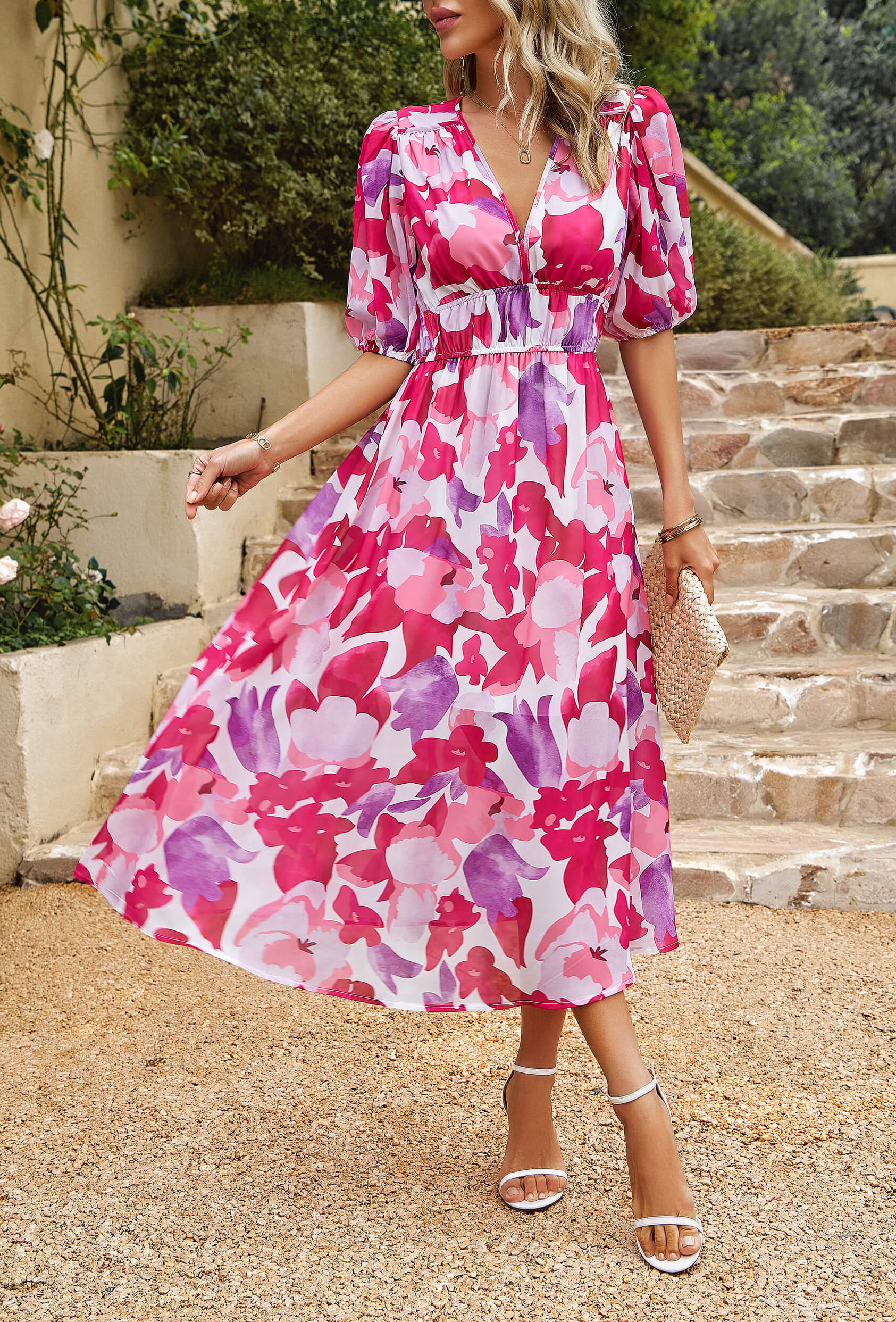 Step out in style with our Euphoric Mood Floral Printed Midi Dress. Featuring colorful, eye-catching floral prints, this dress commands attention, delivering unstoppable confidence and an effortless, daring style. Dare to stand out!
