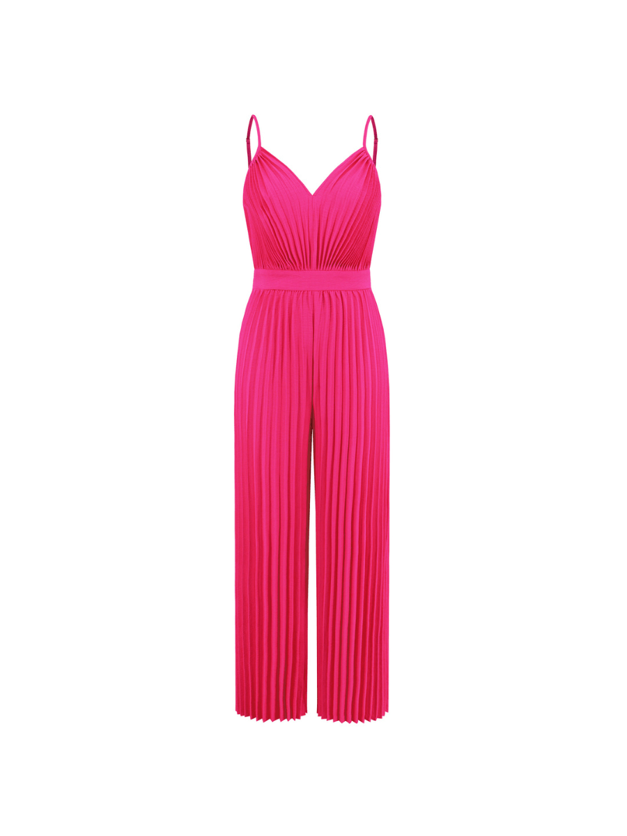 The Felicia Plisse Relaxed Jumpsuit in bright fuchsia is the epitome of luxury and elegance. Crafted with a unique plisse fabric, this jumpsuit drapes effortlessly on the body, creating a relaxed yet sophisticated silhouette. Perfect for any occasion, it exudes exclusivity and refined style.