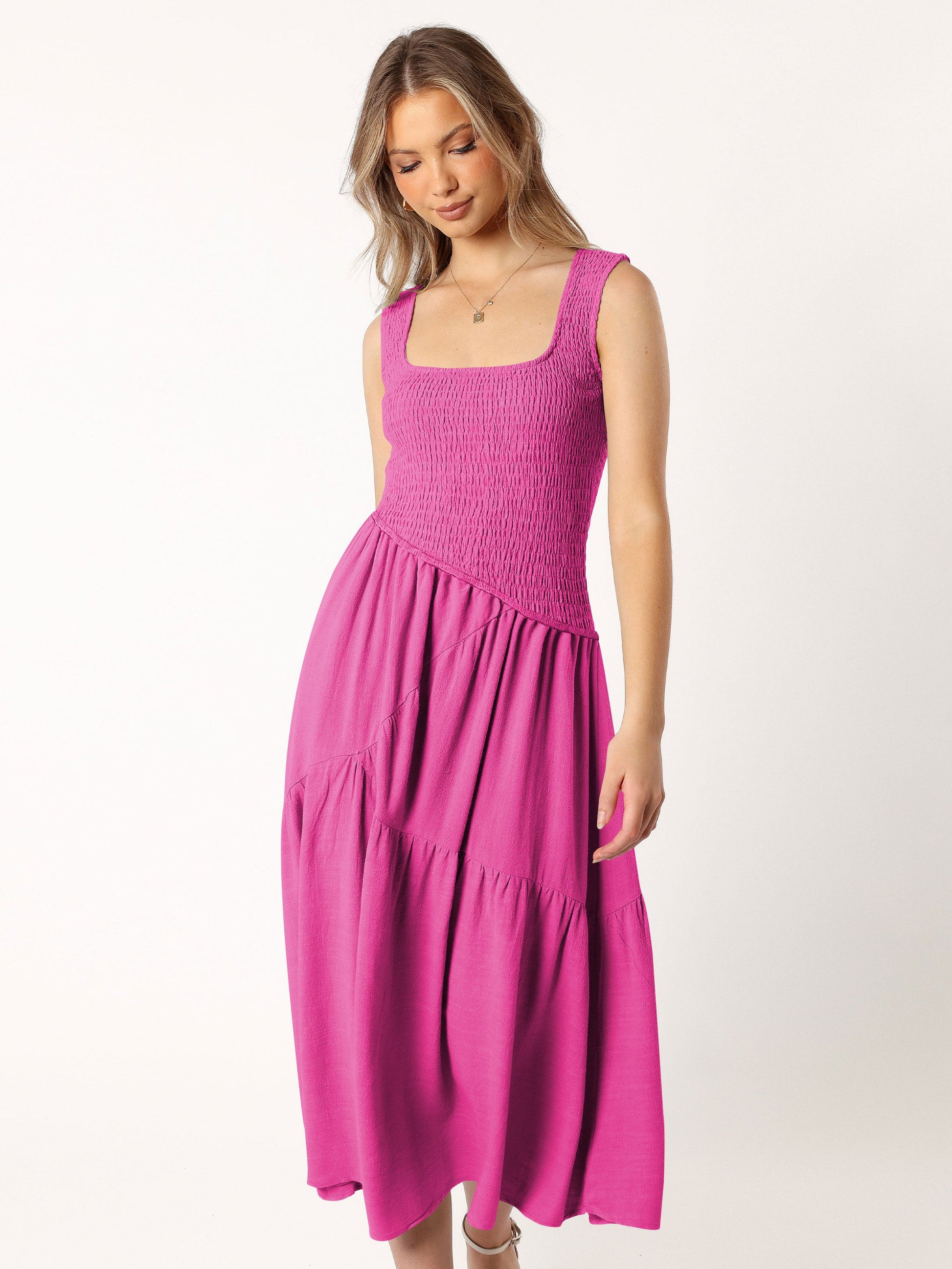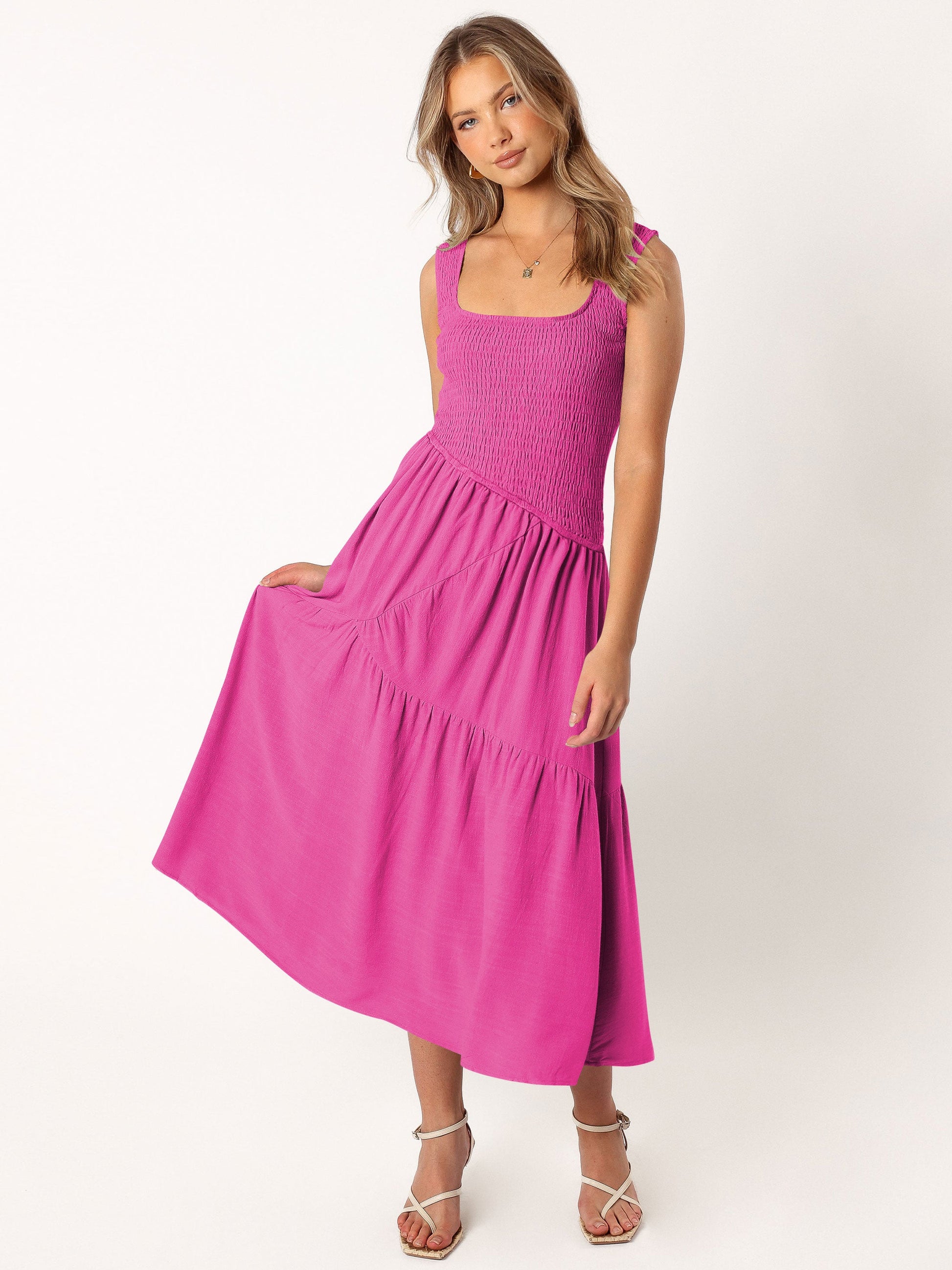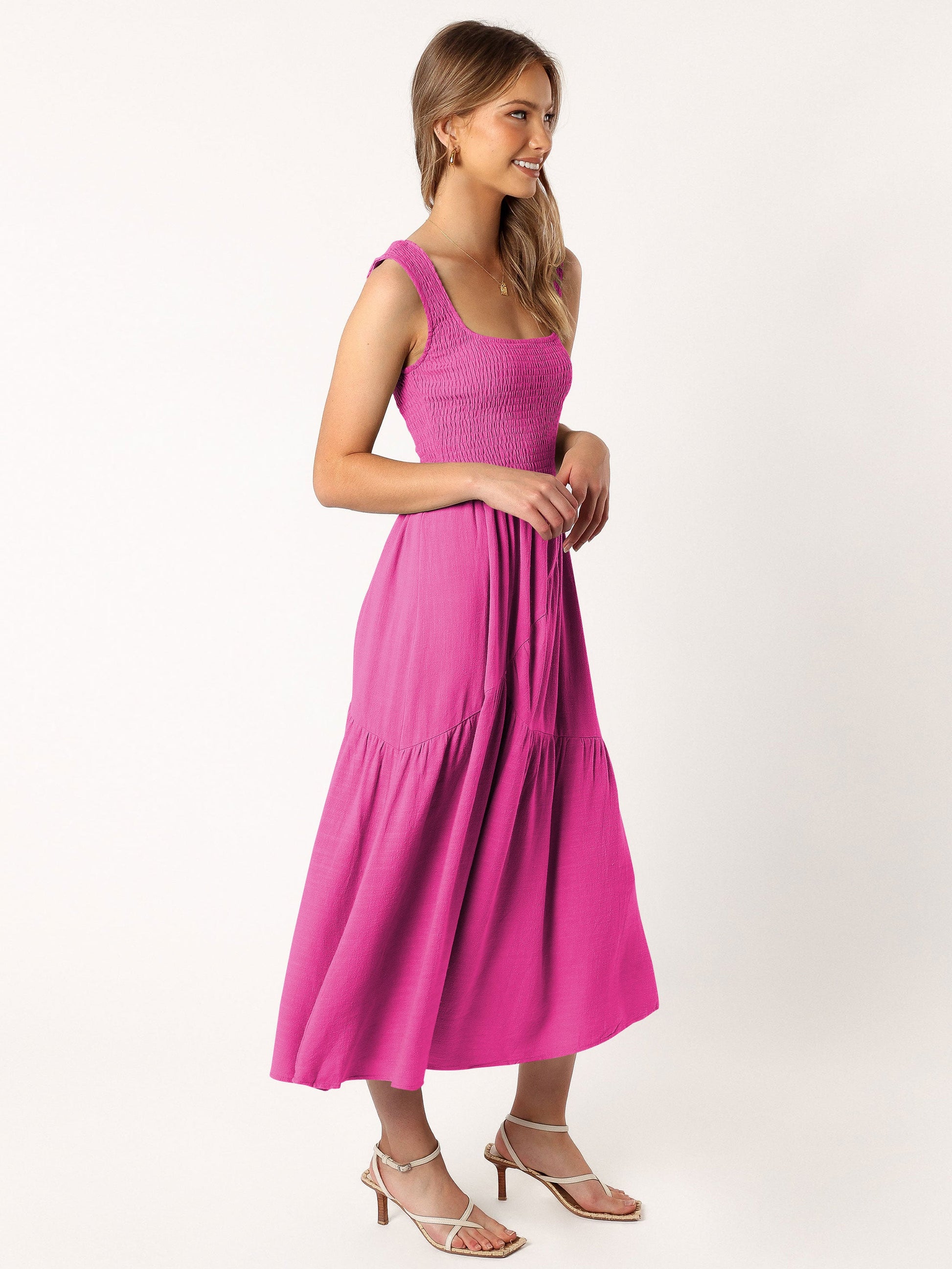 Channel your inner bohemian goddess with our Feminine Frills Smocked Maxi Dress in stunning rose pink. Designed with delicate smocking and feminine frills, this dress is perfect for any occasion. Embrace your free-spirited style in comfort and style. (Now that's a dress worth twirling in!)