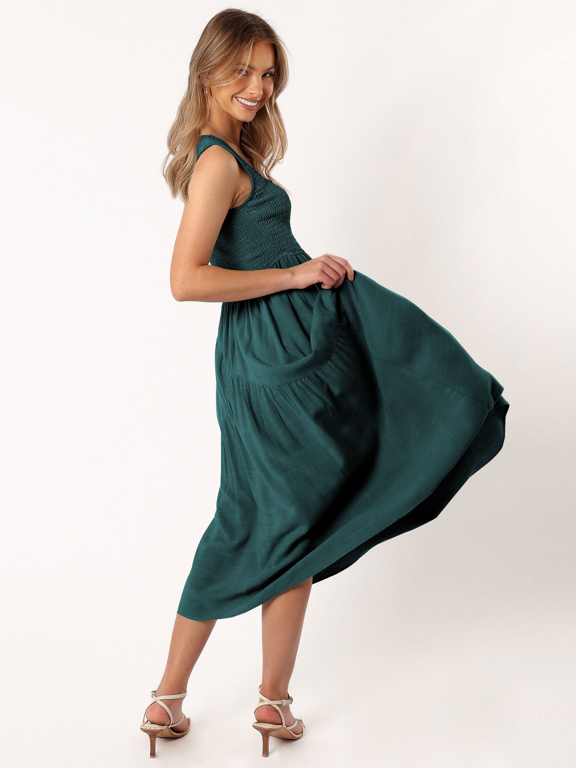 Feminine Frills Smocked Maxi Dress - Teal