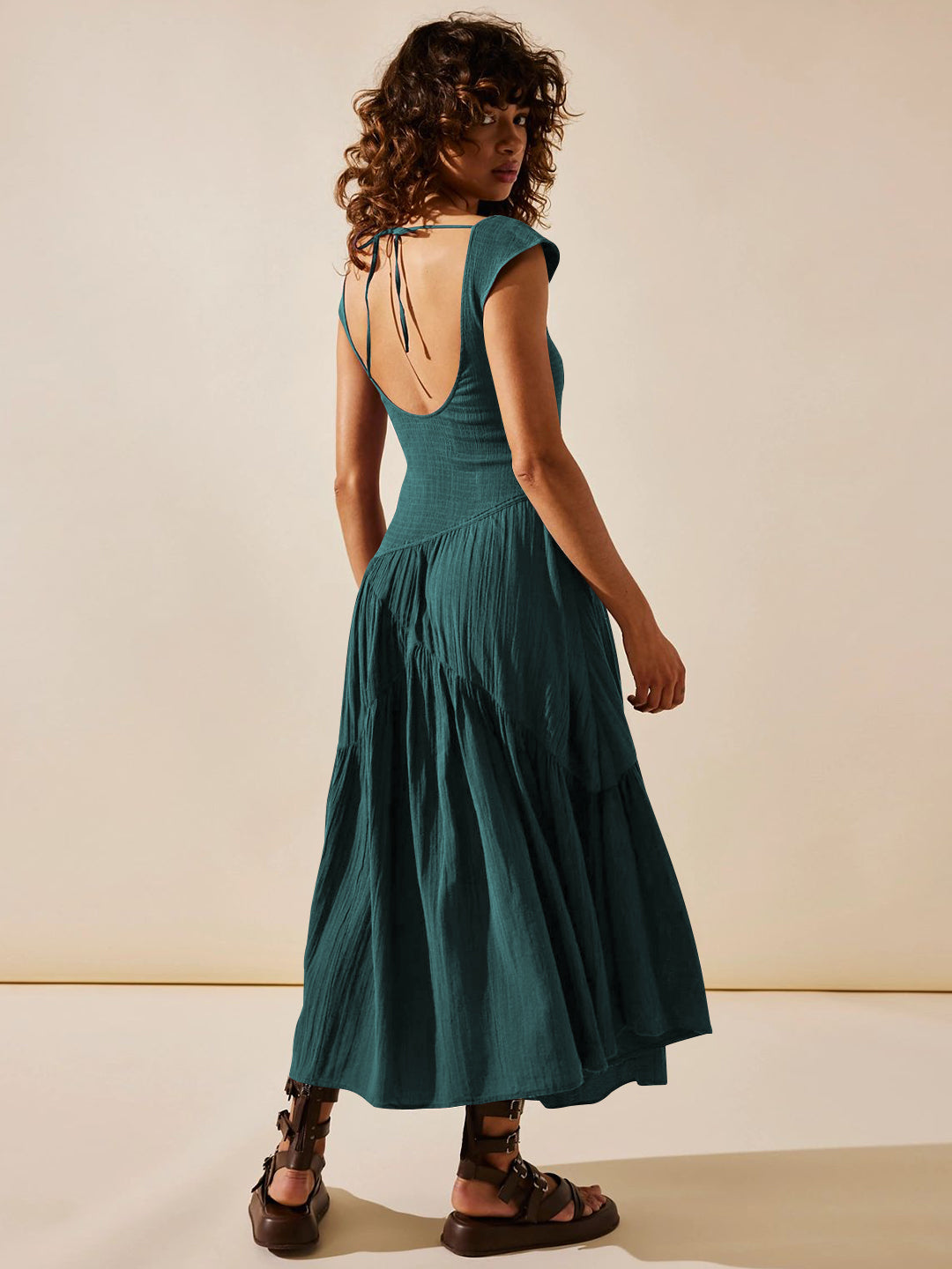 Channel your inner bohemian goddess with our Feminine Frills Smocked Maxi Dress in stunning teal. Designed with delicate smocking and feminine frills, this dress is perfect for any occasion. Embrace your free-spirited style in comfort and style. (Now that's a dress worth twirling in!)