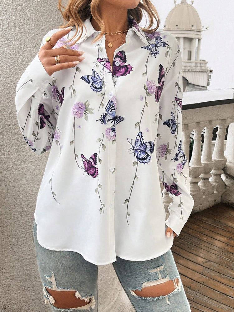 Fly away in style with the Garden Whisper Butterfly Print Blouse! This playful top features a whimsical butterfly print that will make you feel like a free spirit. With its lightweight material and unique design, this blouse is the perfect addition to your wardrobe. Let the butterflies inspire you to spread your wings and embrace your inner beauty.