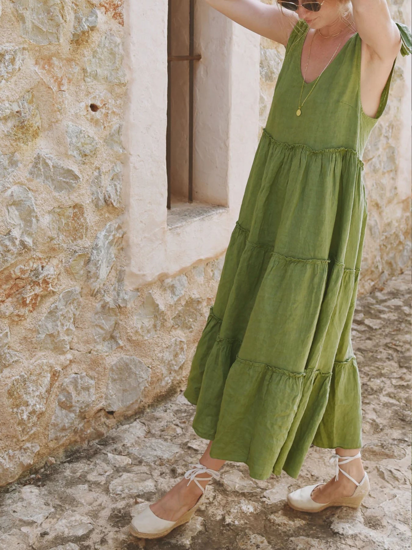 Get ready for some serious summer vibes with the Hadley Tiered Linen Maxi Dress! Made with lightweight linen fabric, this dress will keep you cool and stylish all day long. The tiered design adds a playful touch, perfect for any casual or dressy occasion. Say hello to your new go-to dress!