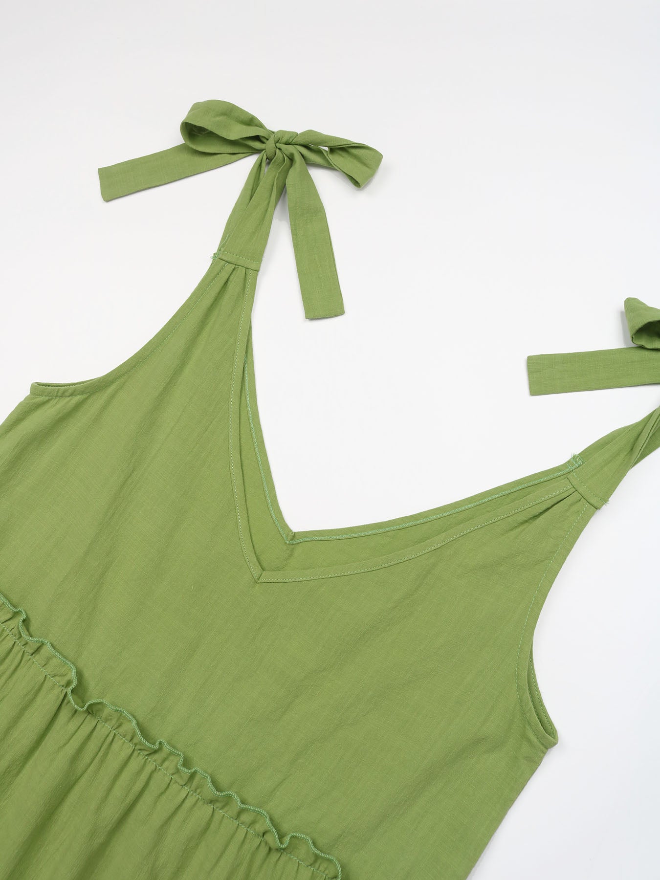 - Feature: V neckline. Flowy fit. Sleeveless with shoulder tie. Tiered. Maxi Length. Not lined. No closure. Relaxed fit. Maternity Friendly.