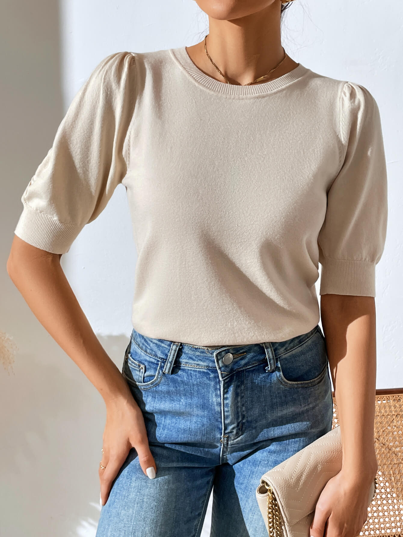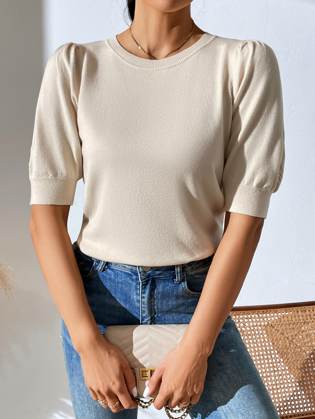 HALO SHORT SLEEVE COTTON BLEND KNIT TOP - BEIGE