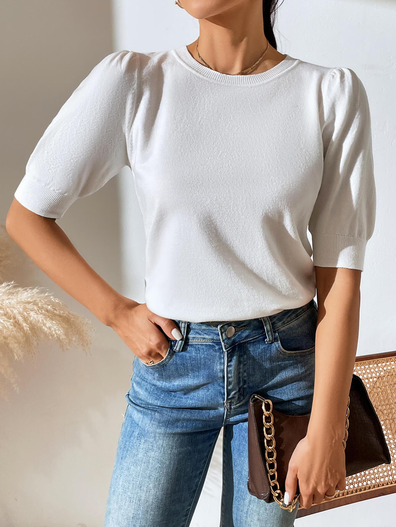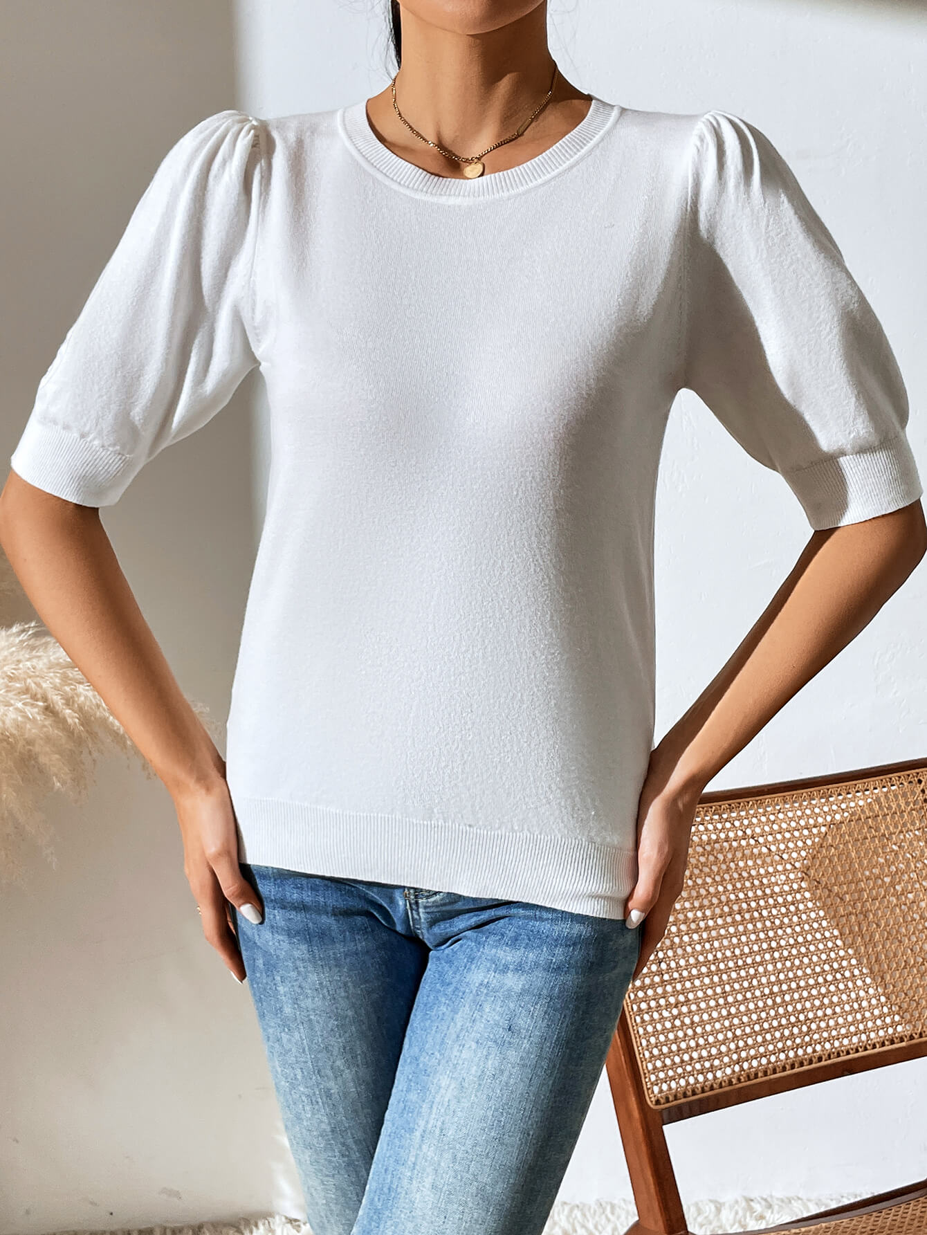 HALO SHORT SLEEVE COTTON BLEND KNIT TOP - CREAM