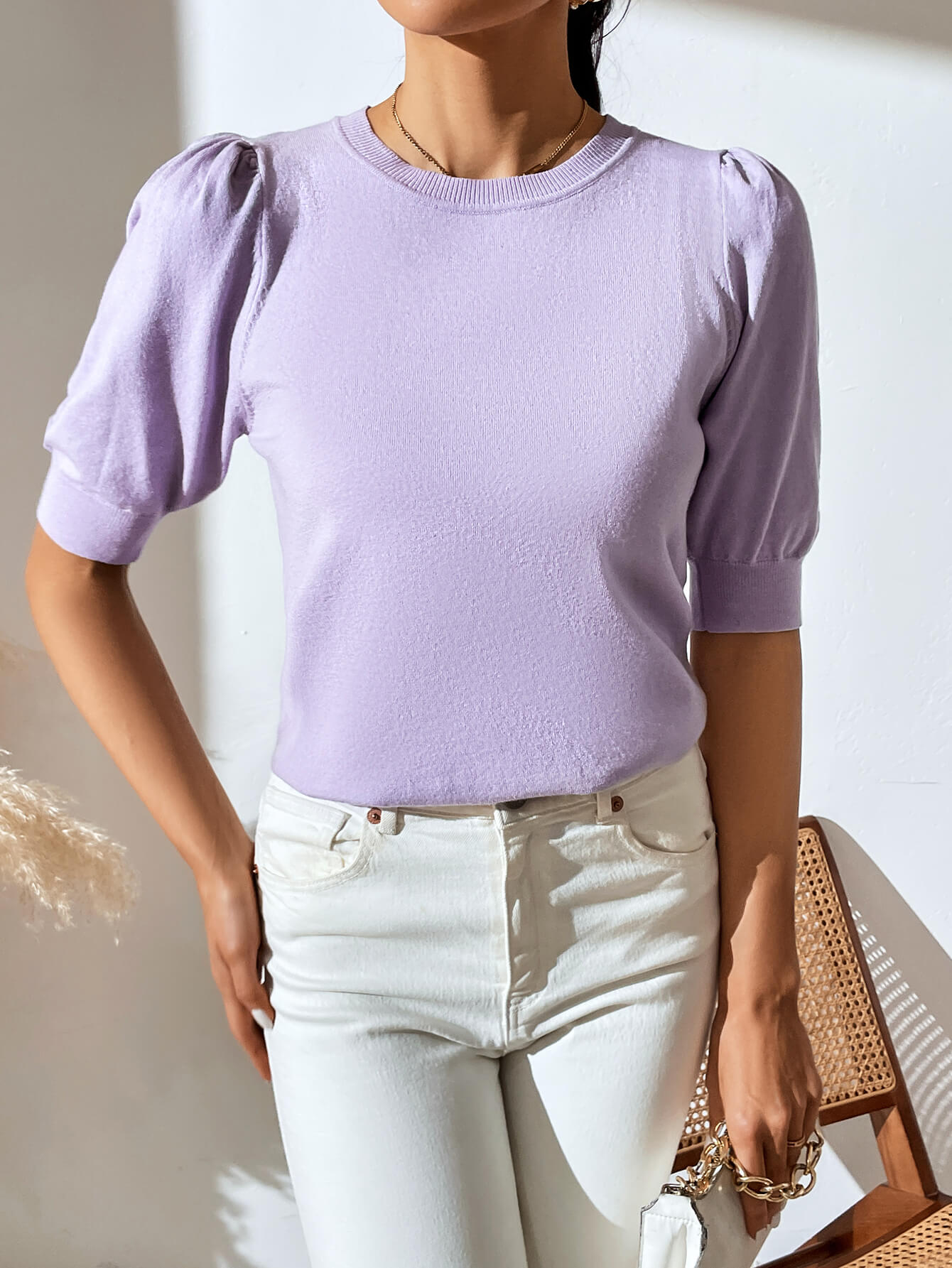 HALO SHORT SLEEVE COTTON BLEND KNIT TOP - LILAC