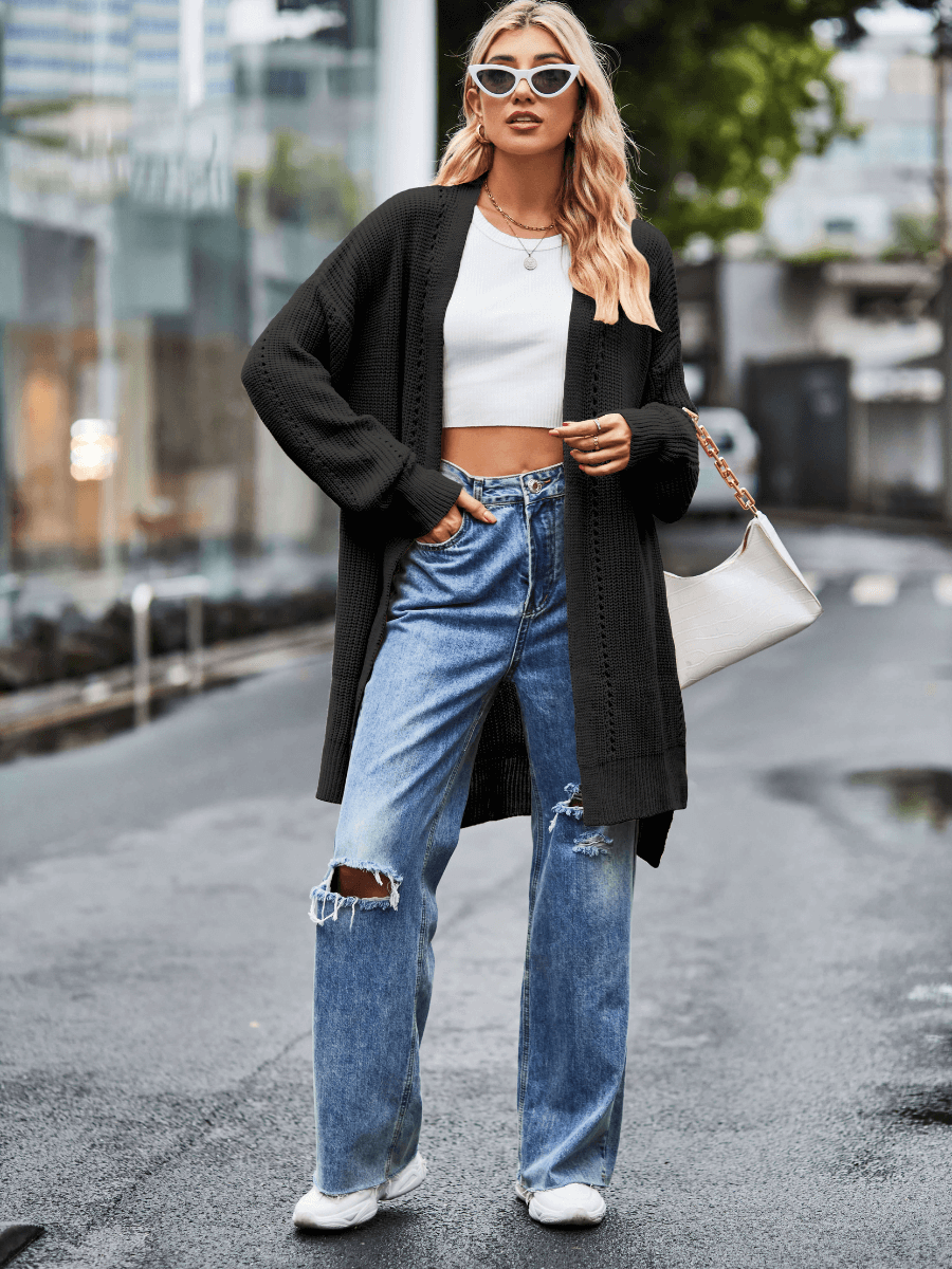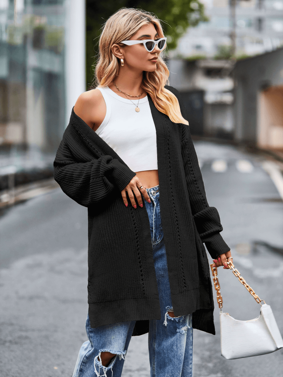 - Feature: Oversized duster fit. Open front – no closures.Knit Fabric. Cozy knit fabrication. Relaxed Fit.