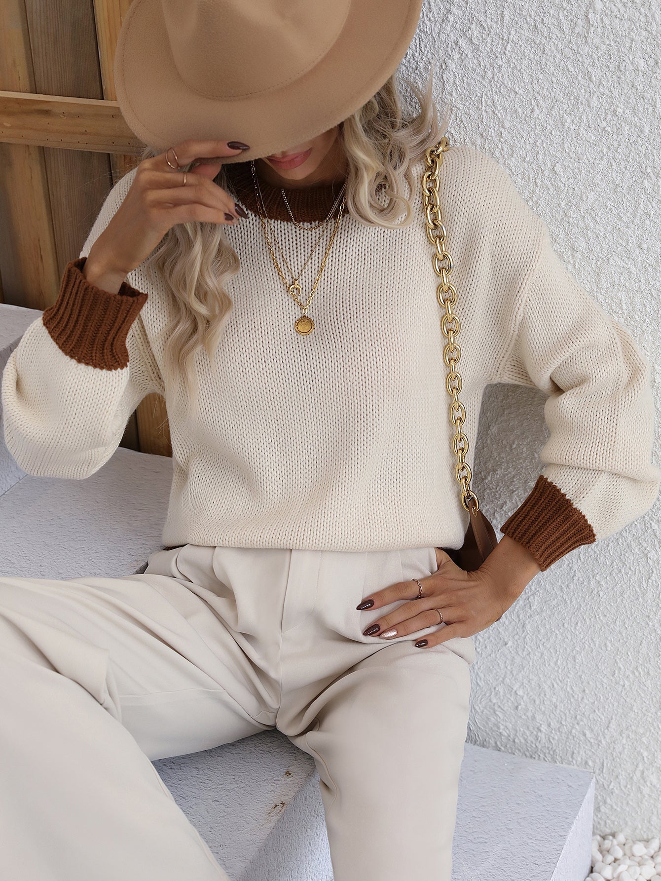 Our Kasmere knit sweater comes in a gorgeous cream base withbrowncontrastcolor. Your go-to chilling buddy while relaxing in the aroma of scented candles in a romantic ambience, thissweater is designed with aclassic crew collar, long relaxed drop sleeves. Match it withour luxe ankle bootsor trendyleather boots!