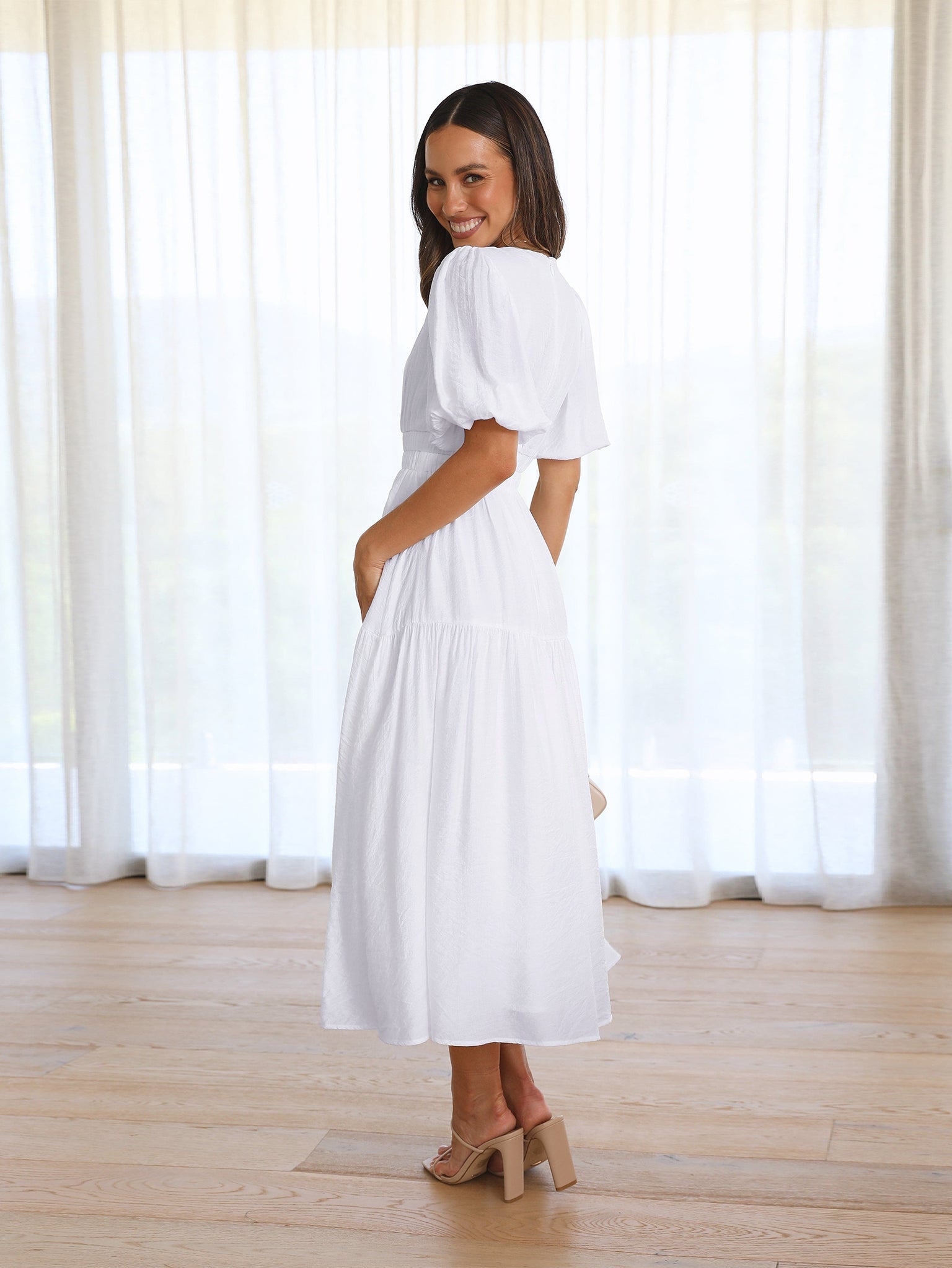 KIMONA SMOCKED SHORT SLEEVE MAXI DRESS - WHITE