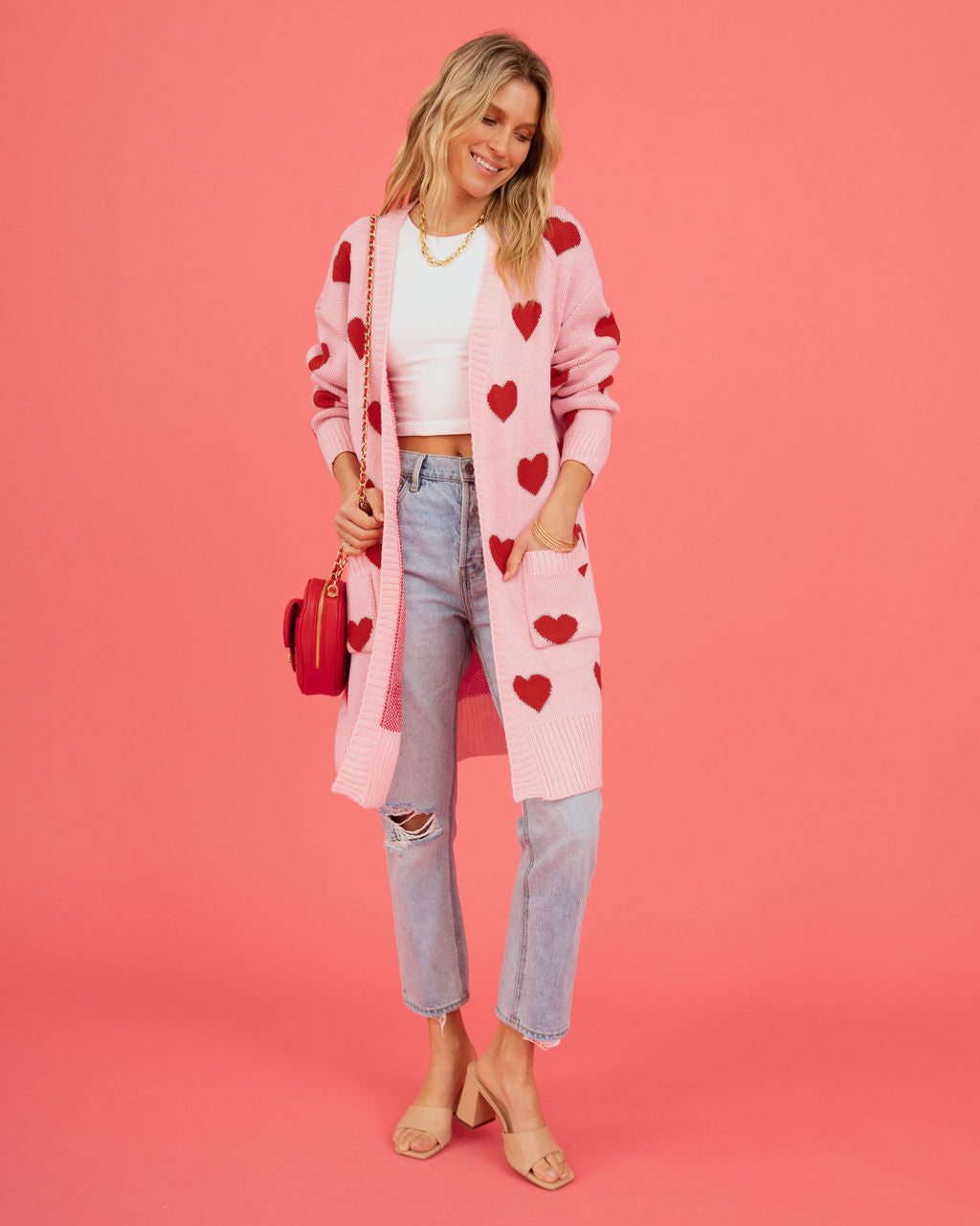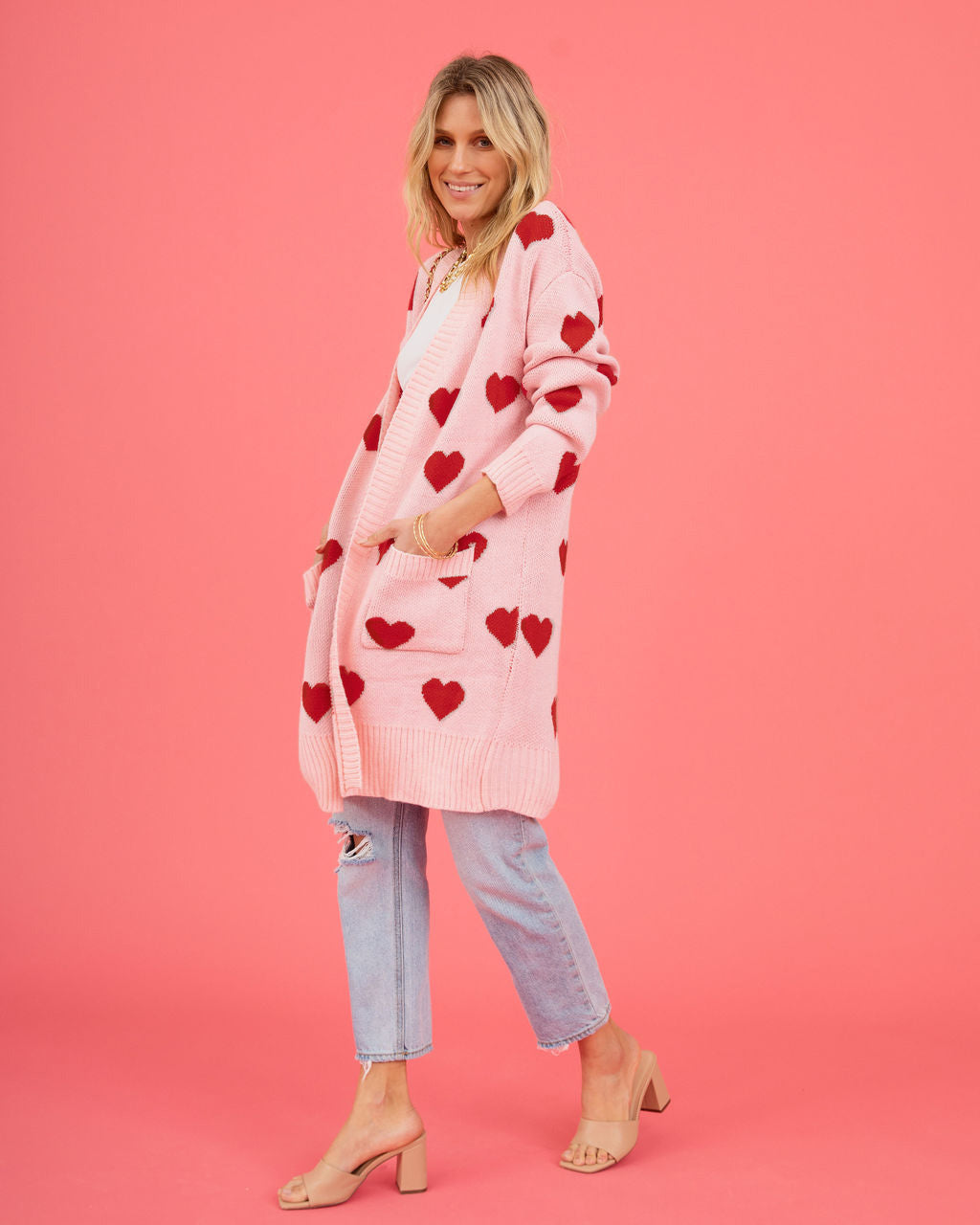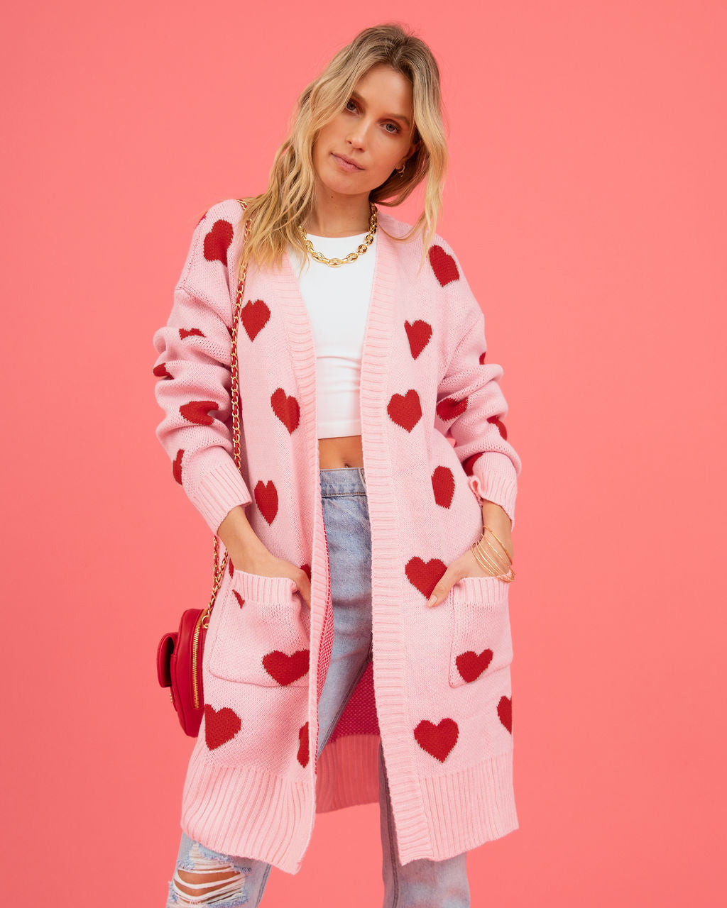 Listen To Your Heart Knit Open Front Cardigan - Pink