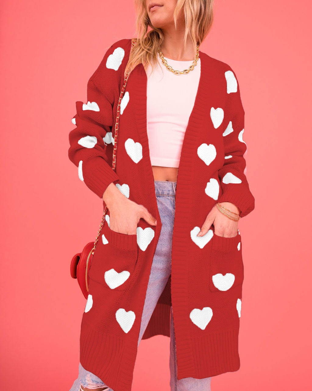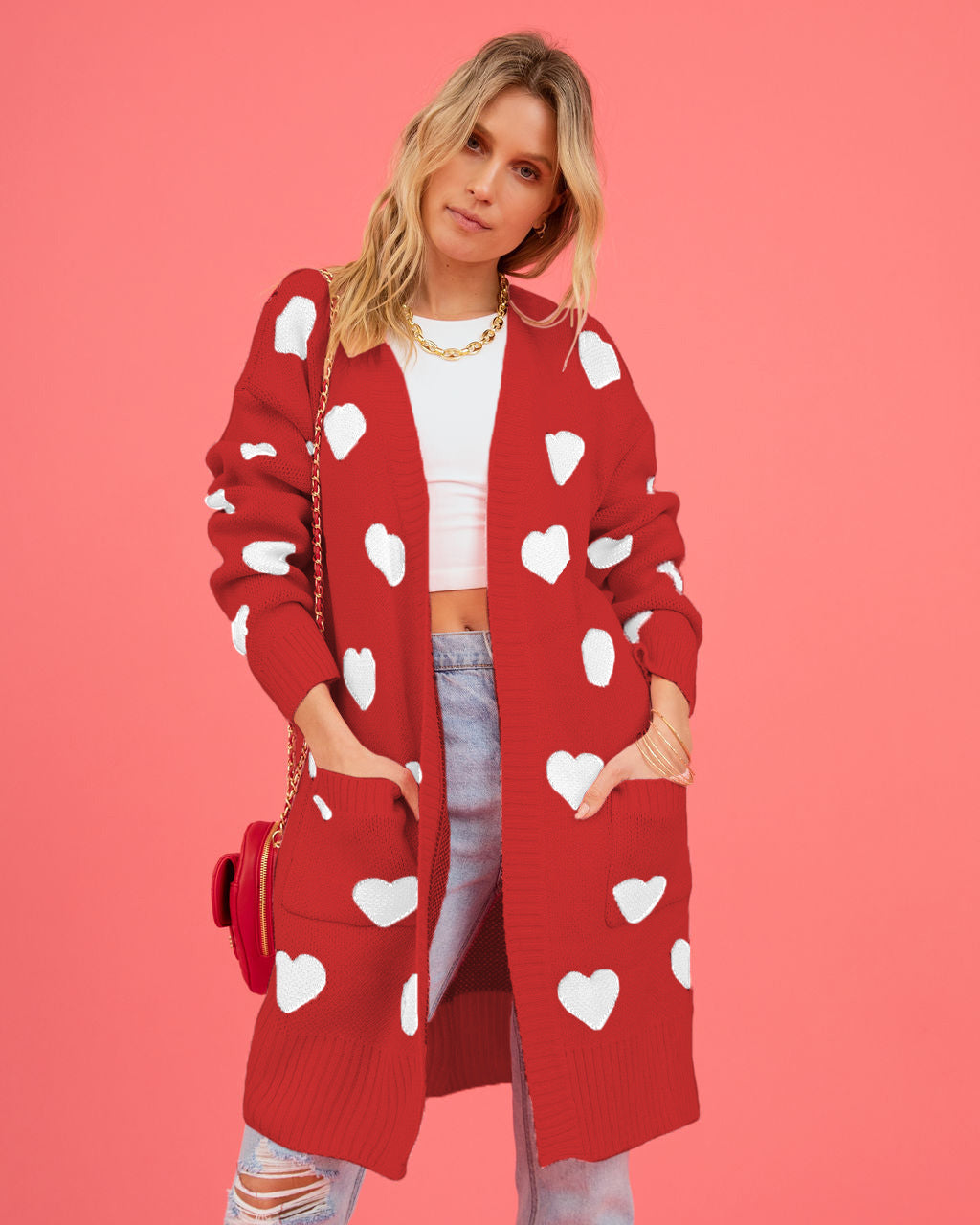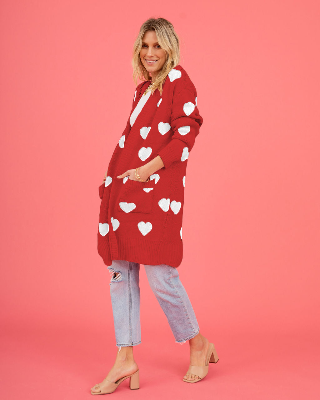 Listen To Your Heart Knit Open Front Cardigan - Red