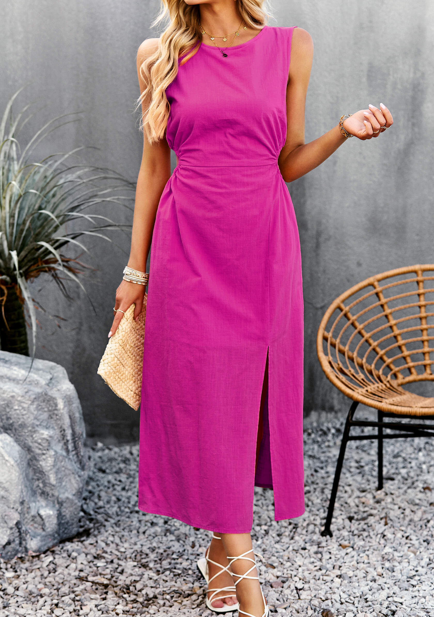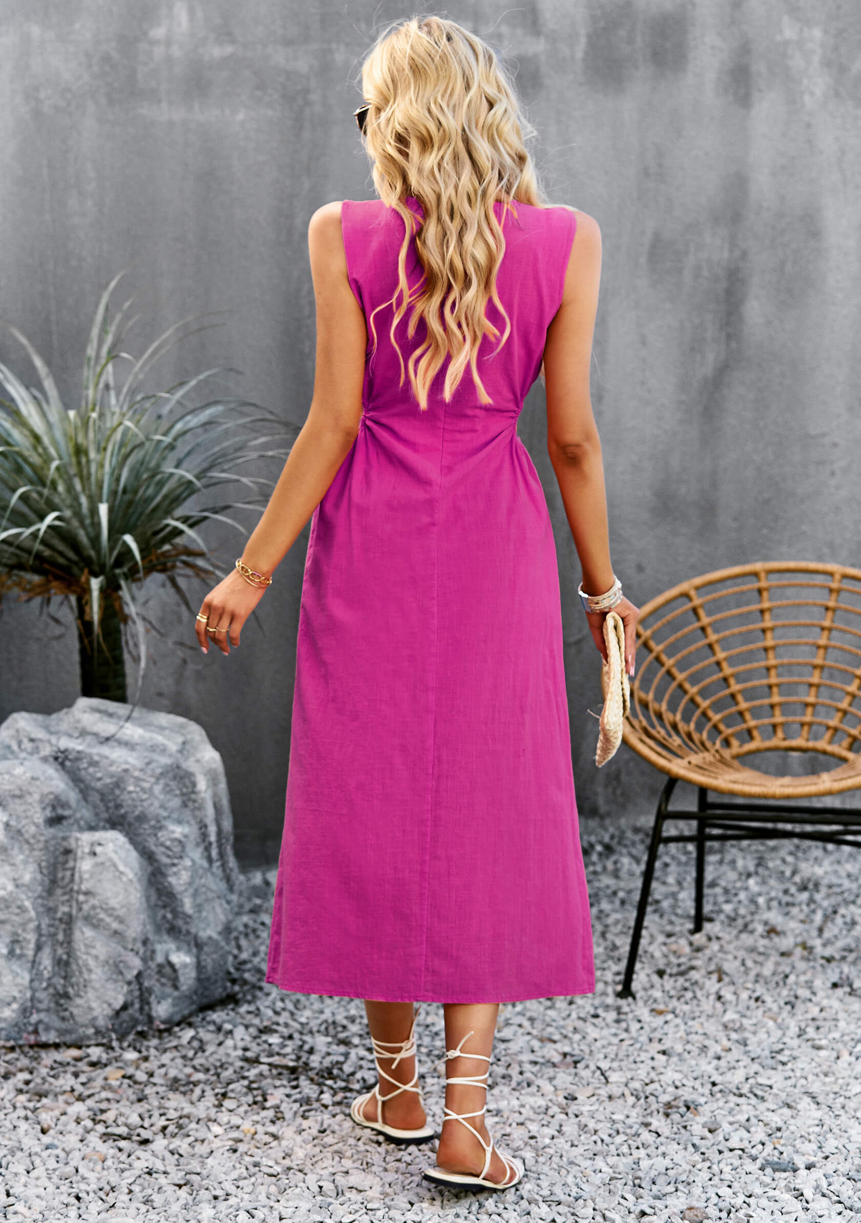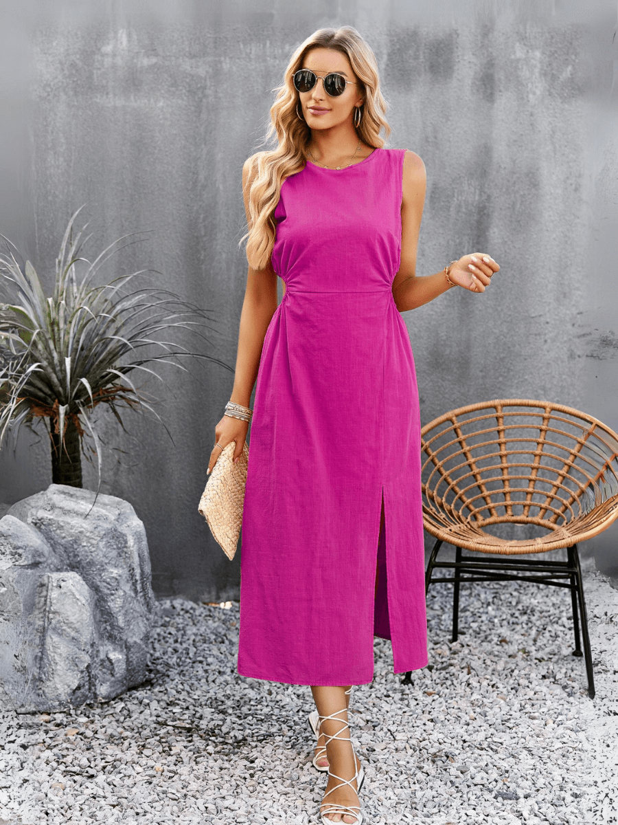 Lunch Date Sleeveless Slit Midi Dress - Magenta