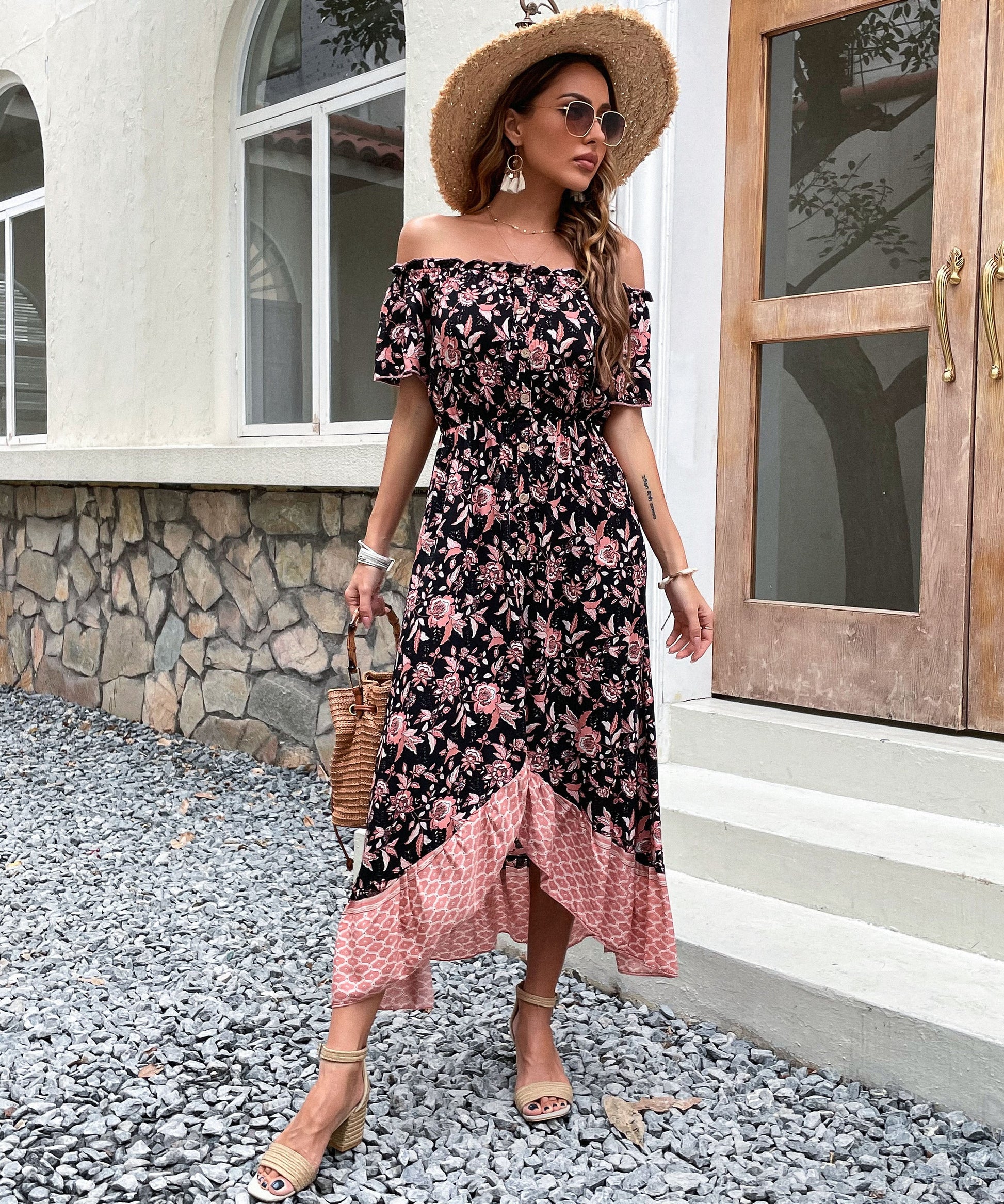 OurLyrebird Dress is a standout black tone base with pinkprint in a relaxed strapless fit perfect for summer! The shirred bust is comfortable and moulds to the bod beautifully. Paired perfectly with our signature sandals, this midi makes for a stunningsummer seasonal piece!