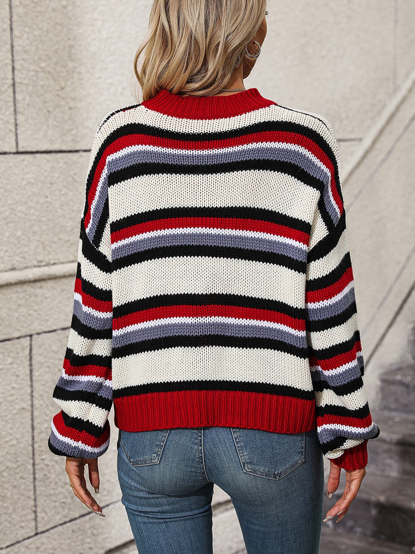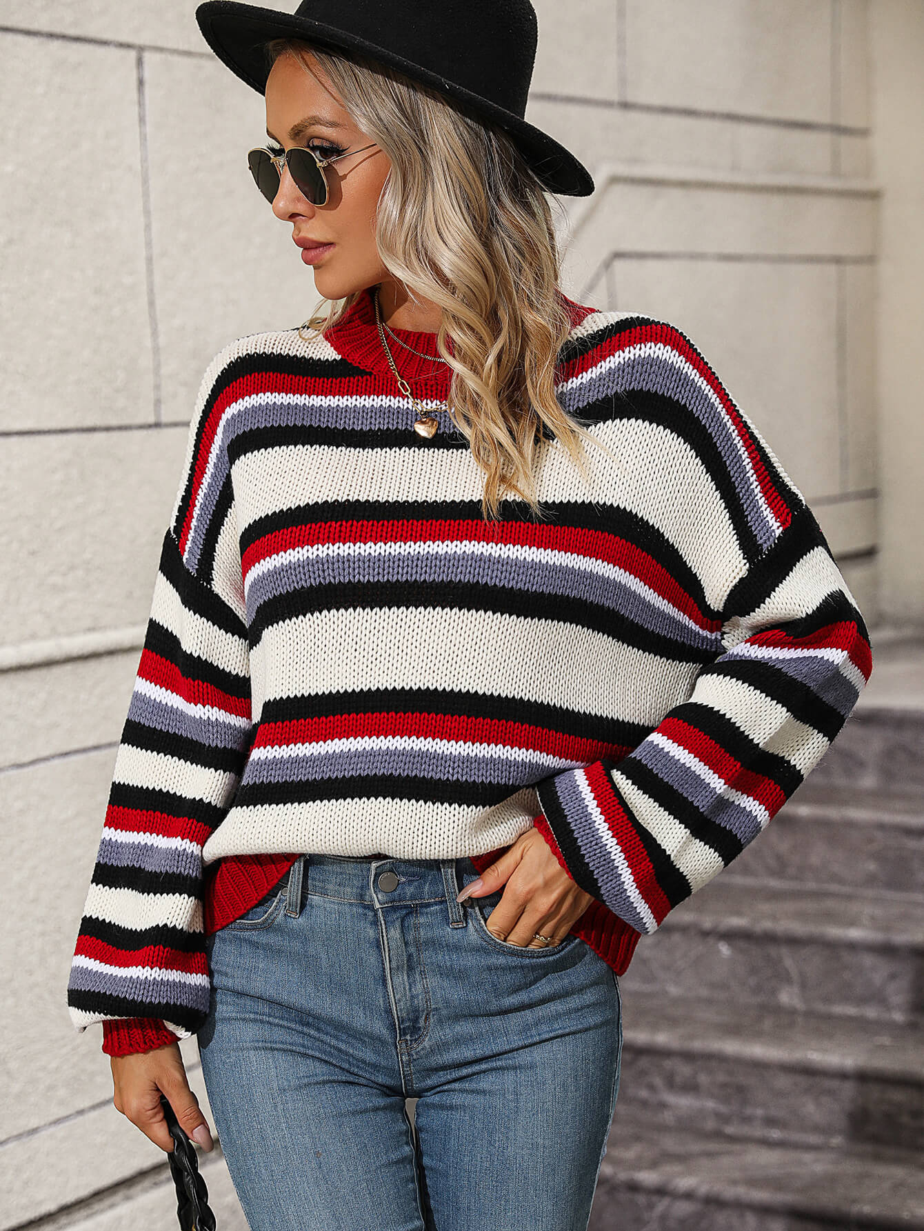 - Key Features:Crew neckline with ribbed trim. Cozy batwing longsleeves. Stripe Knit fabric with stretch. Oversized Relax Fit.