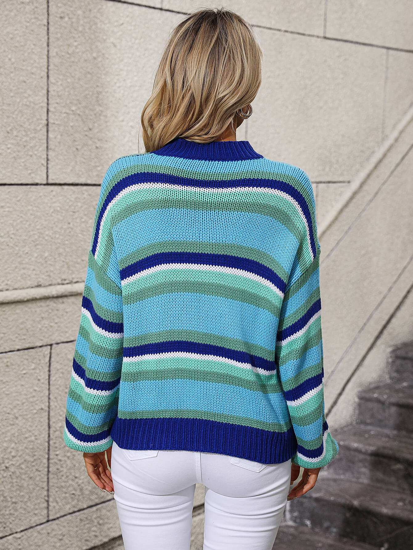 Crafted with a soft, lightweight fabric, the Maddie Striped Pullover Sweater is an elegant yet comfortable choice for sophisticated occasions. The sophisticated striped pattern of the sweater gives it an exclusive air, sure to make a statement. With a hint of turquoise, this timeless piece is the perfect addition to any wardrobe.
