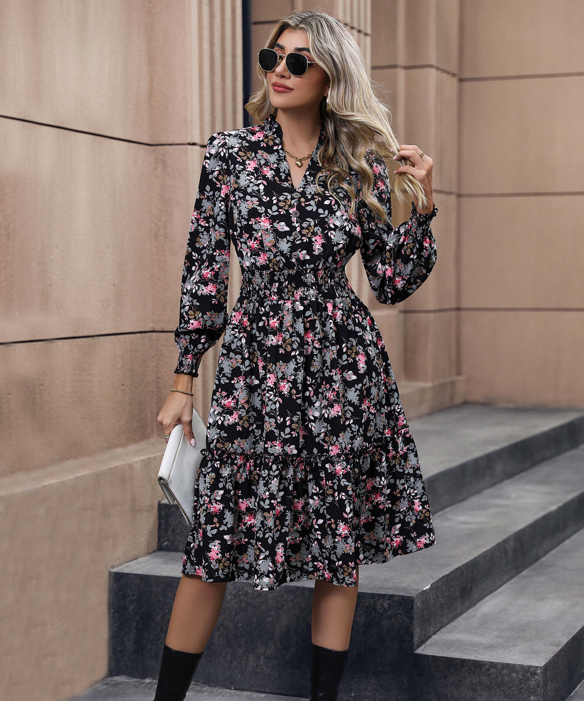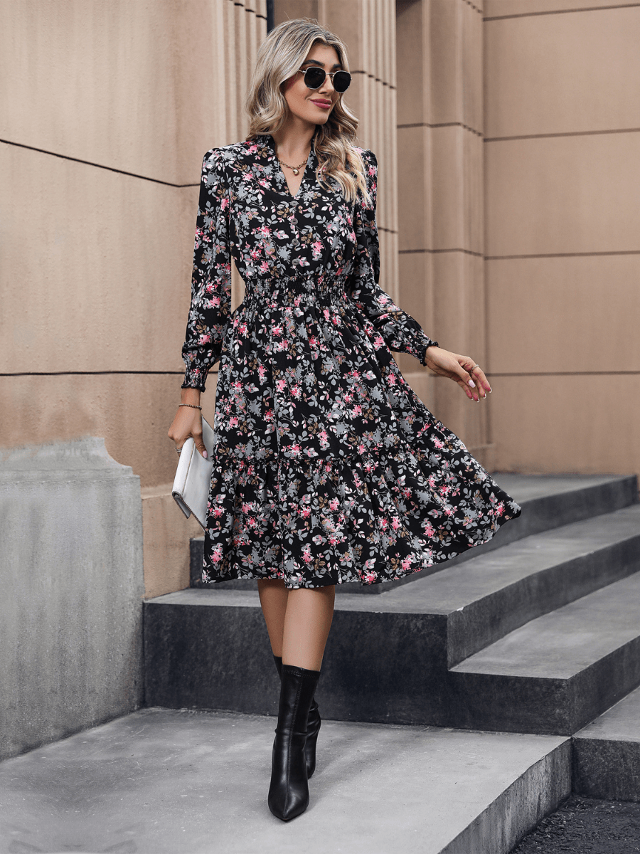 Glam up your wardrobe with the Madeira Floral Midi Dress! This beautiful black dress boasts a pink floral pattern that's sure to ensure you turn heads wherever you go. Darling for date night or brunch with the girls, this dress is perfect for any and all occasions!