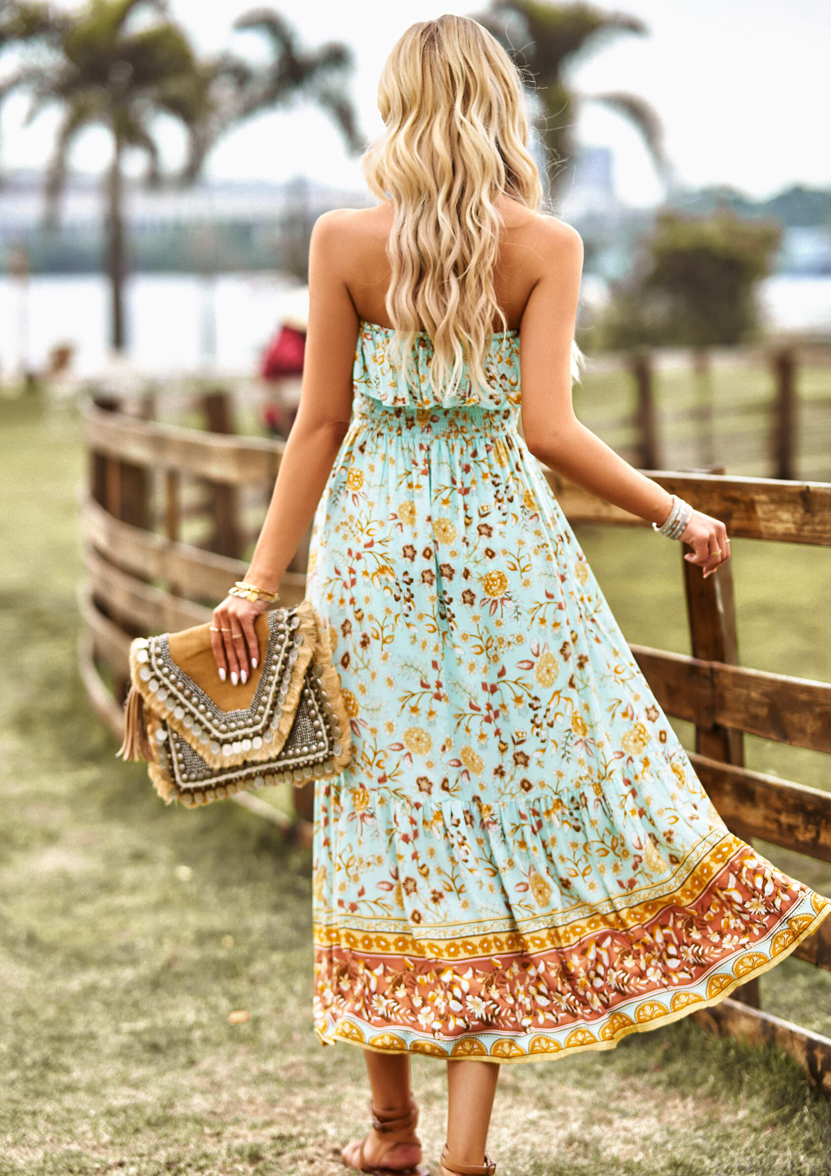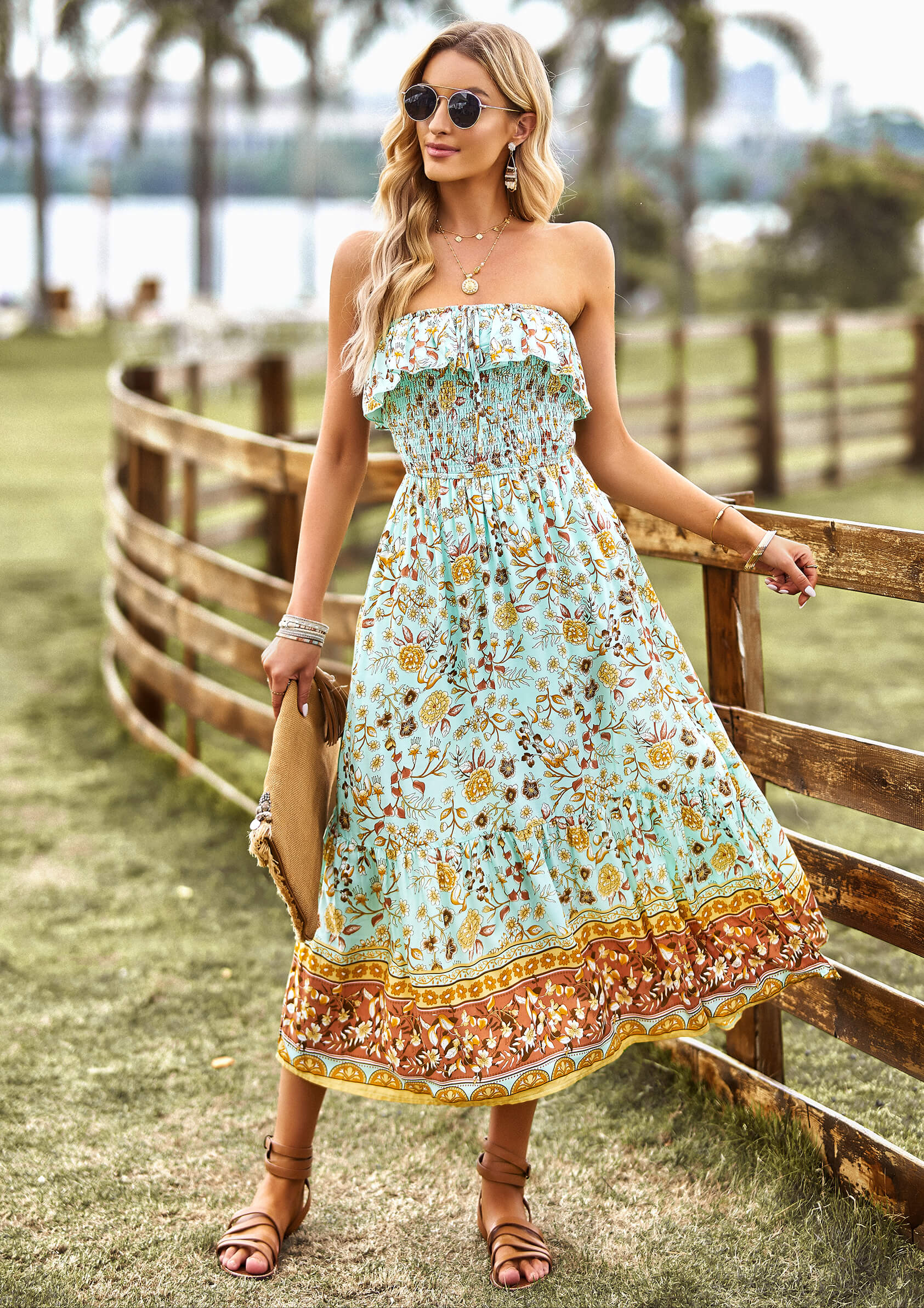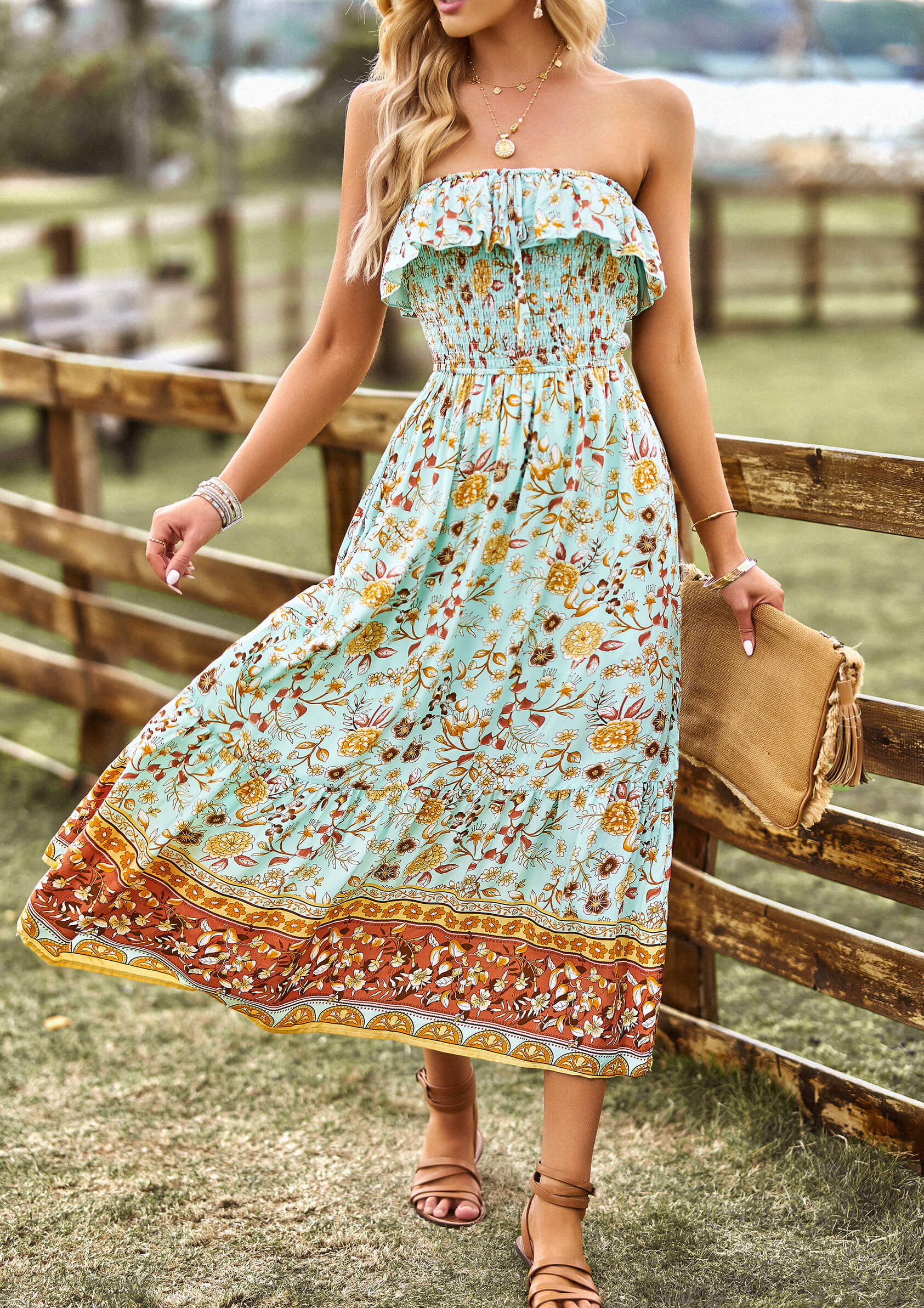 - Feature: Elastic Off the Shoulder. Flowy Top Shelf. Smocked Bodice. Maxi length. Relaxi Fit.