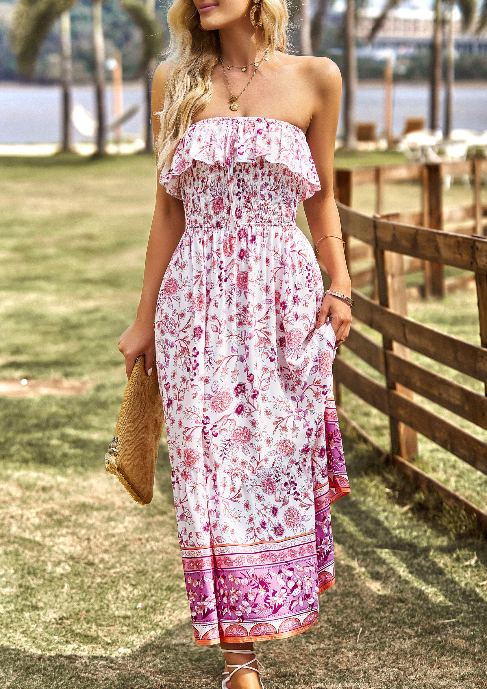 MARISA FLORAL OFF THE SHOULDER MAXI DRESS - PINK