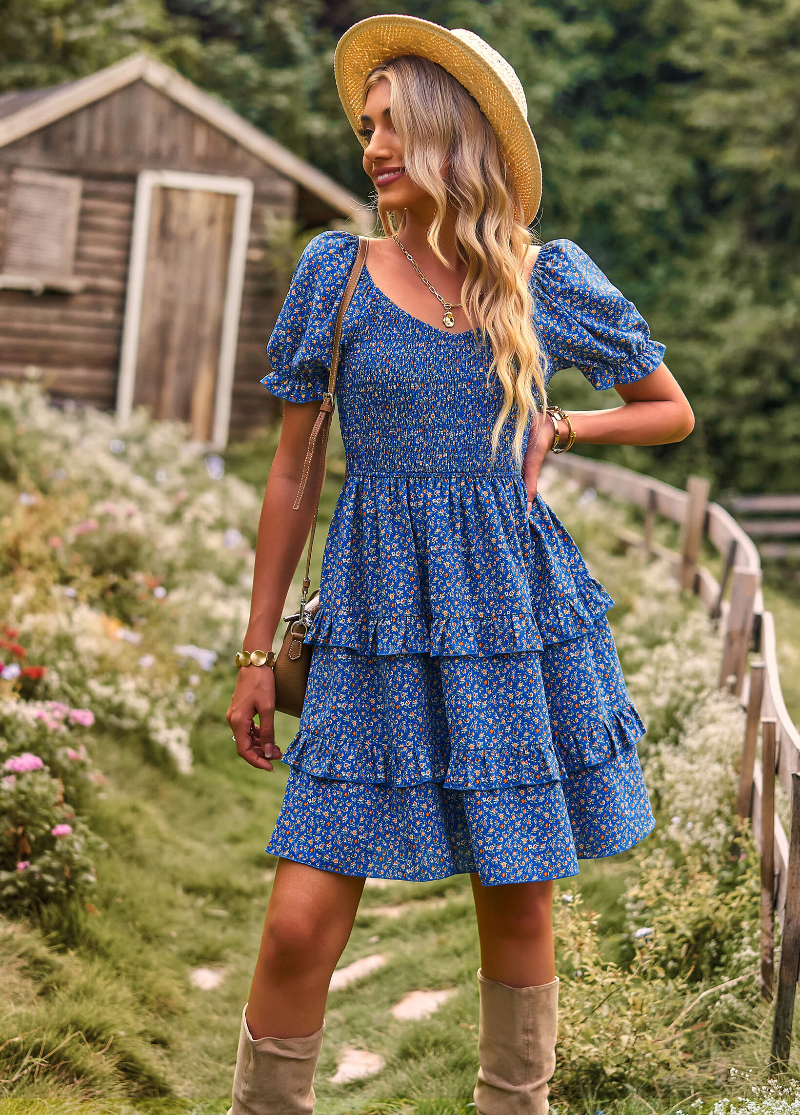 MOMENT IN DAISY SMOCKED MINI DRESS - BLUE