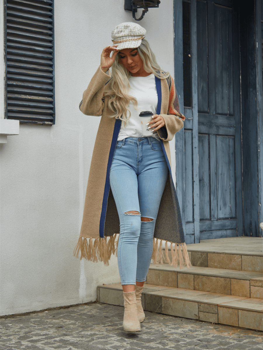This Nemah Fringe Hem Long Cardigan will have you looking as trendy as can be, with its fashionable fringe hem and cozy fabric. Throw it on over any outfit and you'll be looking effortlessly chic in no time! Get ready for a fringed-out fashion moment!