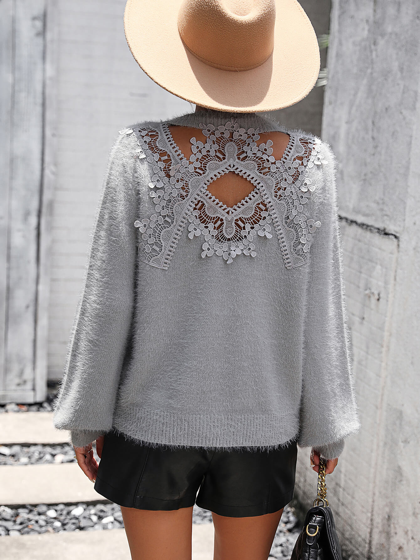 Pretty Petals Lace Floral Pullover Sweater - Grey