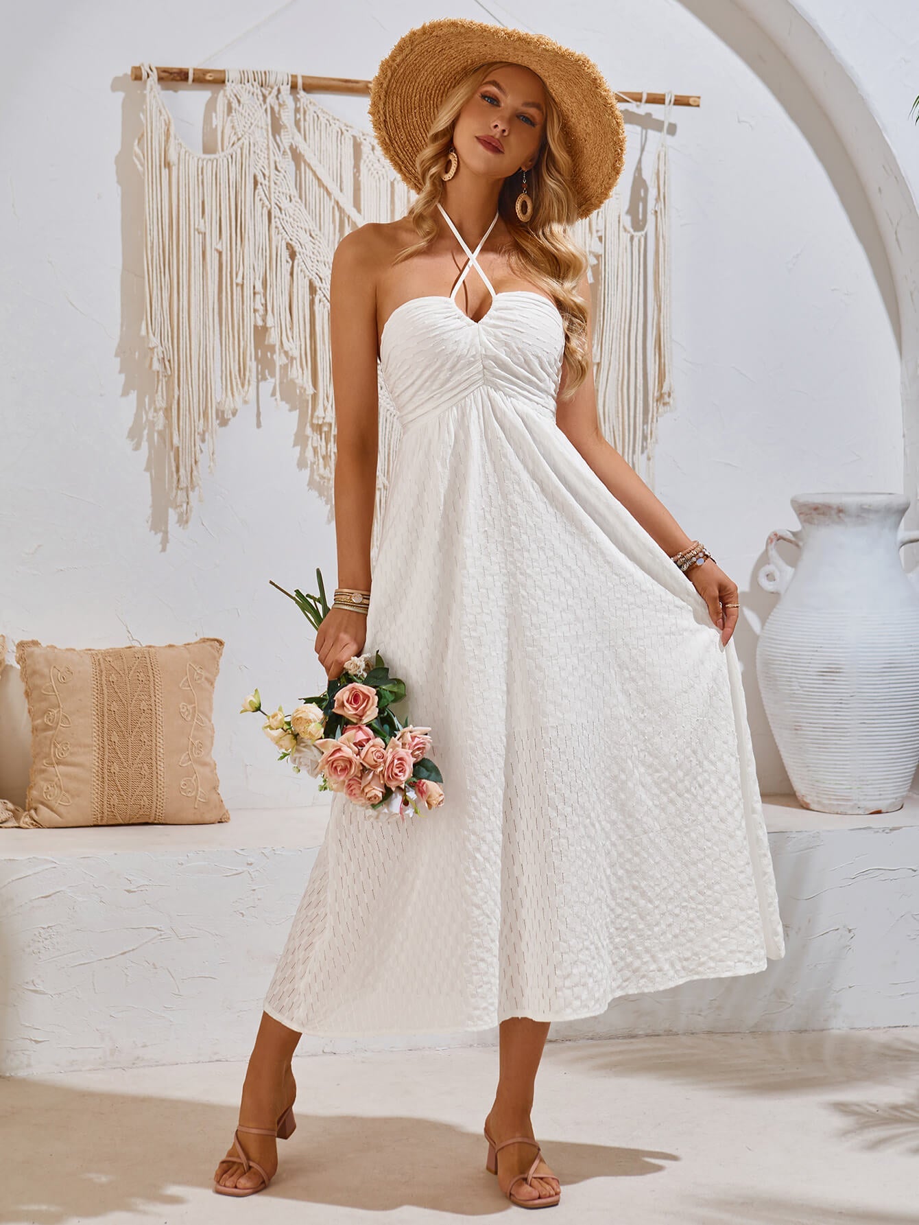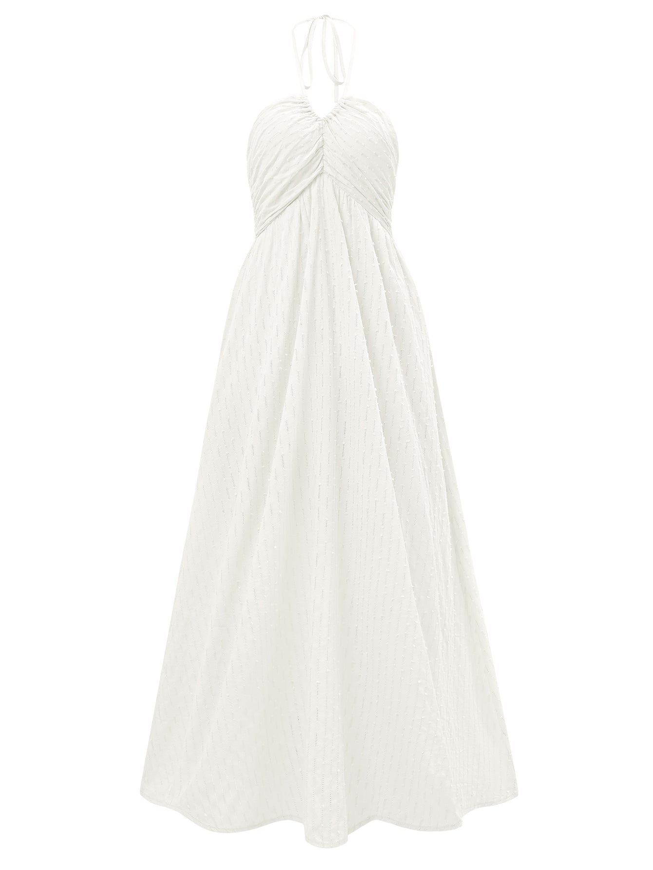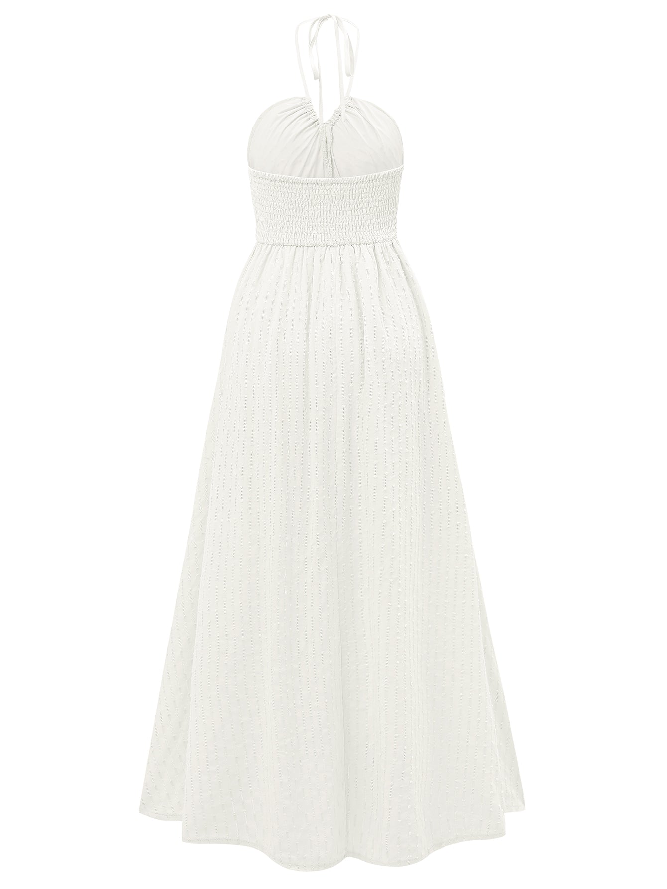 Secure your spot as the best dressed with our Reservation For Two Halter Maxi Dress in white. This breezy halter dress will have you looking and feeling effortlessly chic. Perfect for romantic dinners, vacations, and other special occasions. Limited spots available, book now!