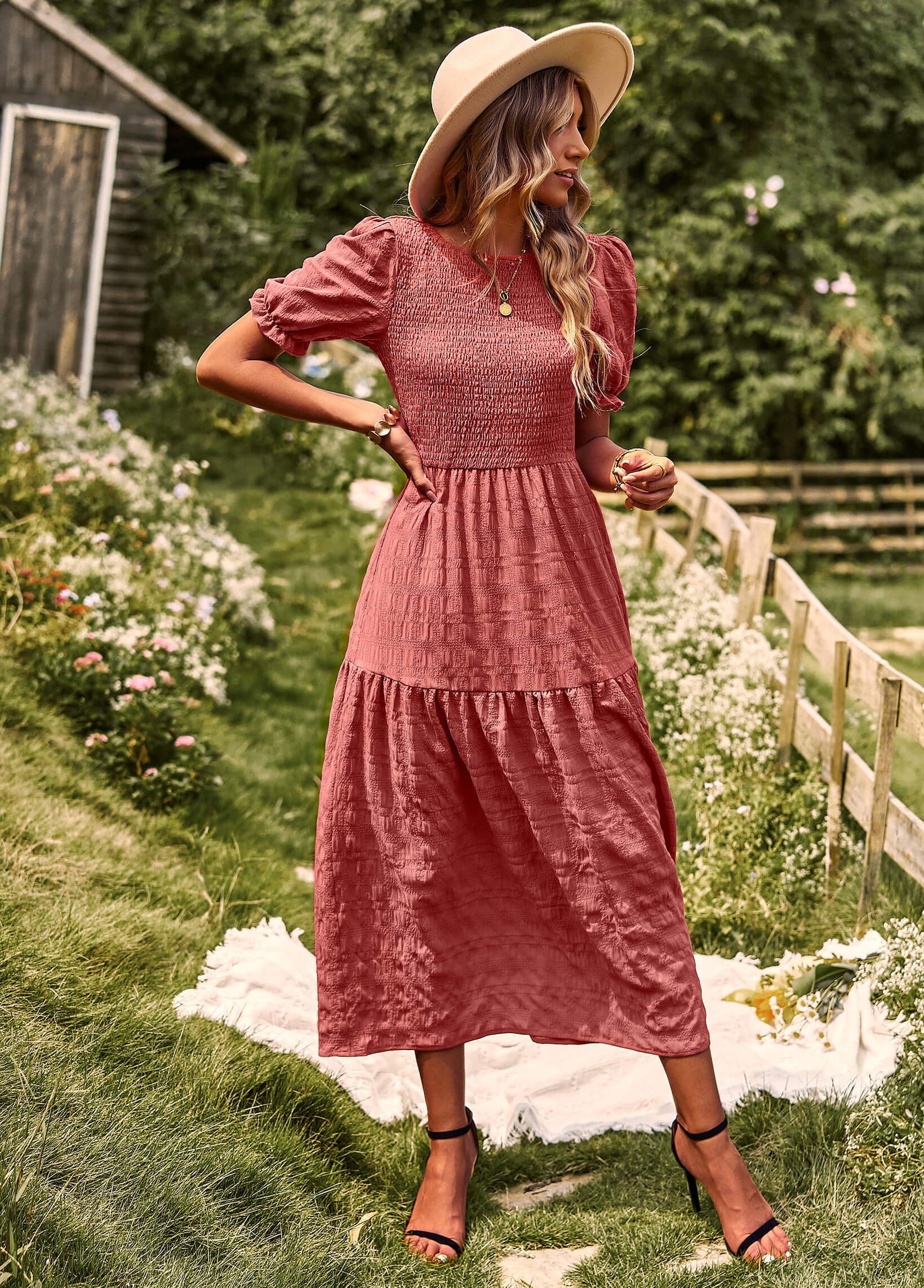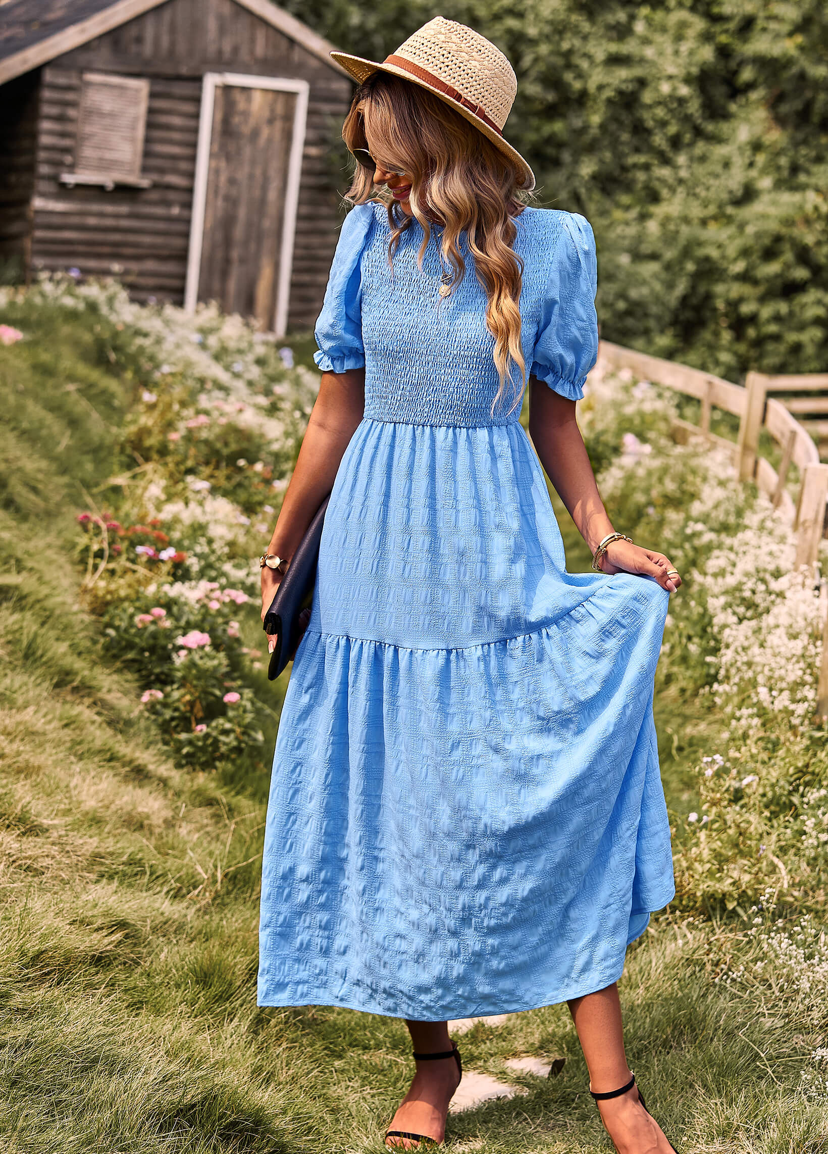 Riviera Romance Smock Tiered Maxi Dress