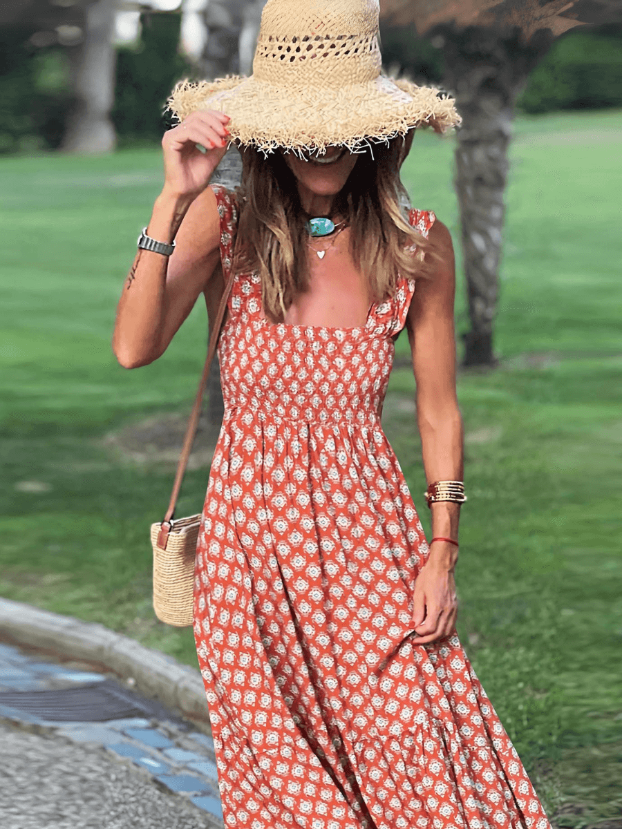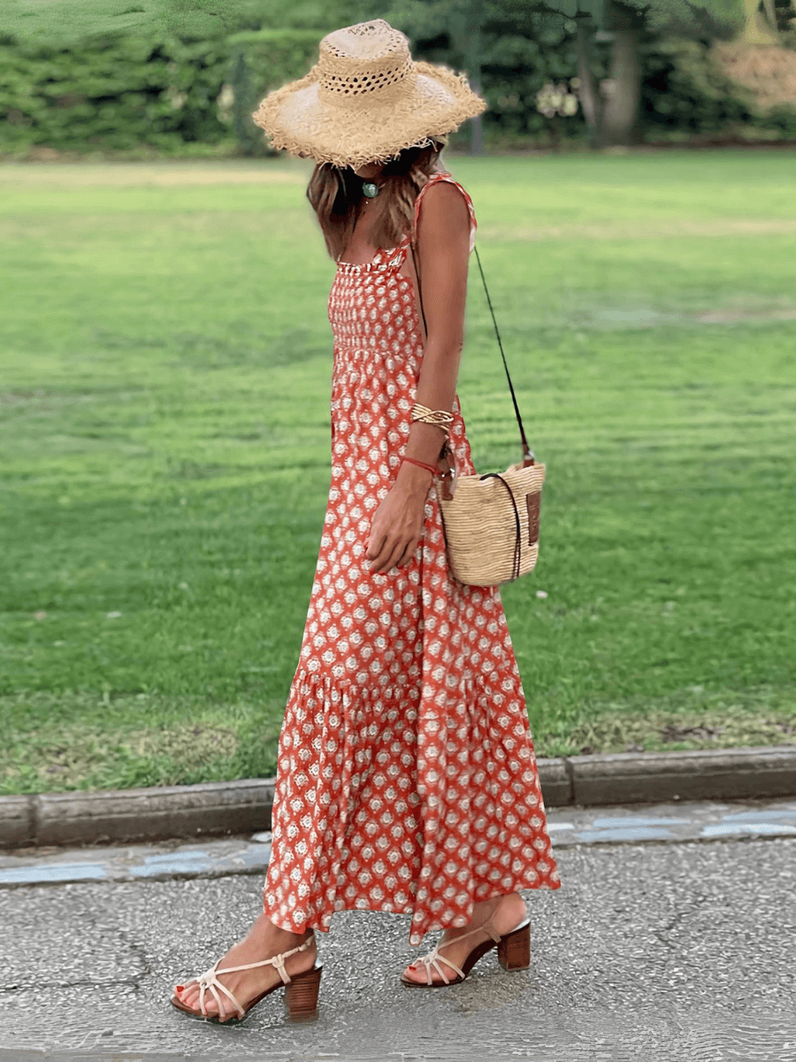 Rylee Strappy Printed Maxi Dress - Orange