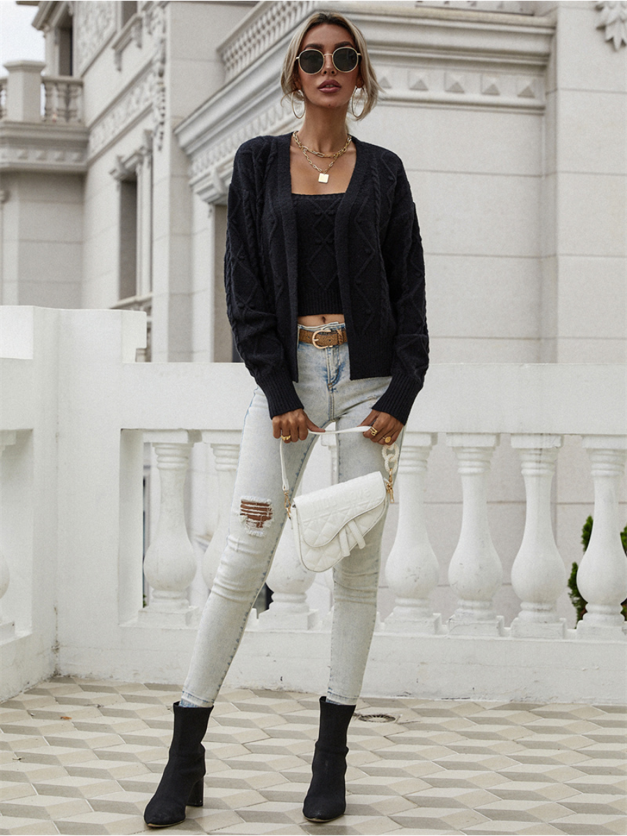 - Feature:Includes one knit cardigan, one sleeveless crop top. (two pieces total)
